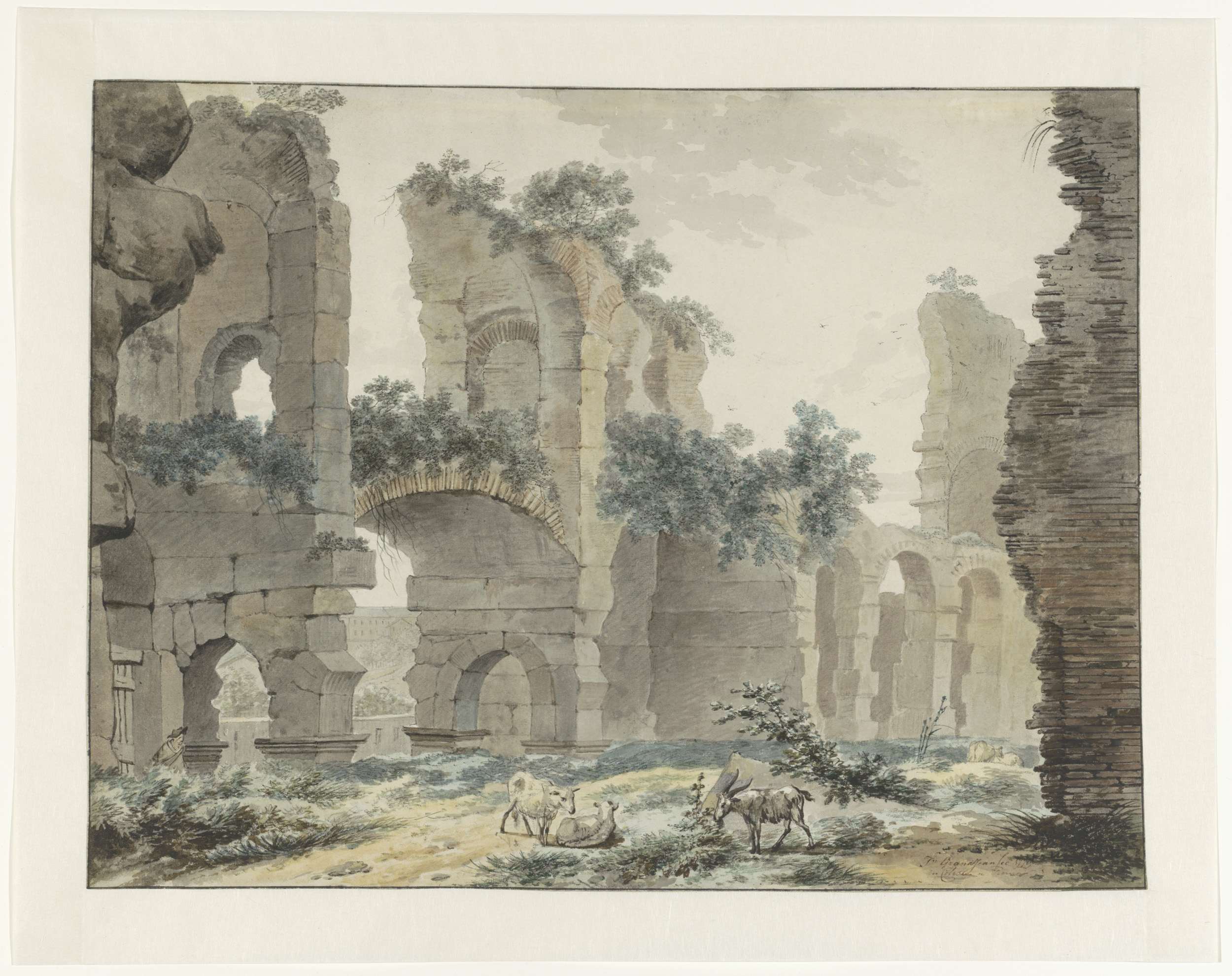 Gezicht in het Colosseum met op de voorgrond een her...