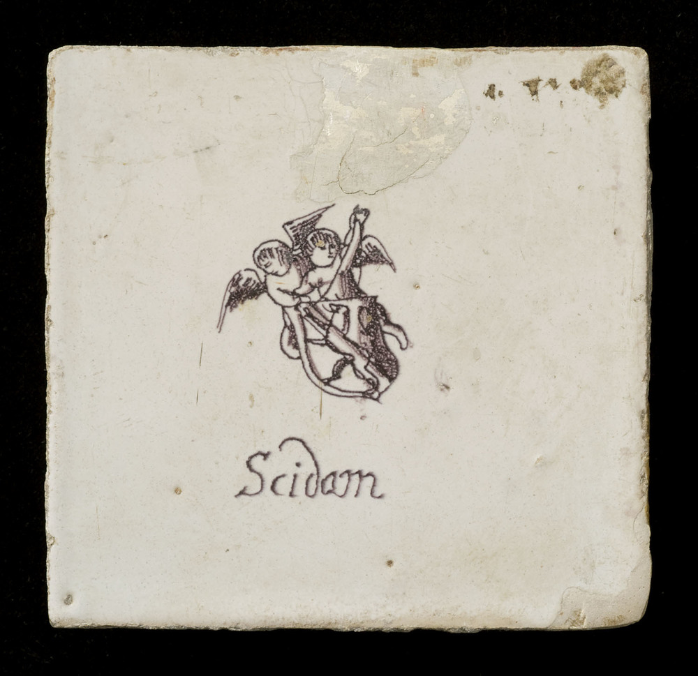 Tegel van keramiek met tinglazuur, voorstellende: wa...