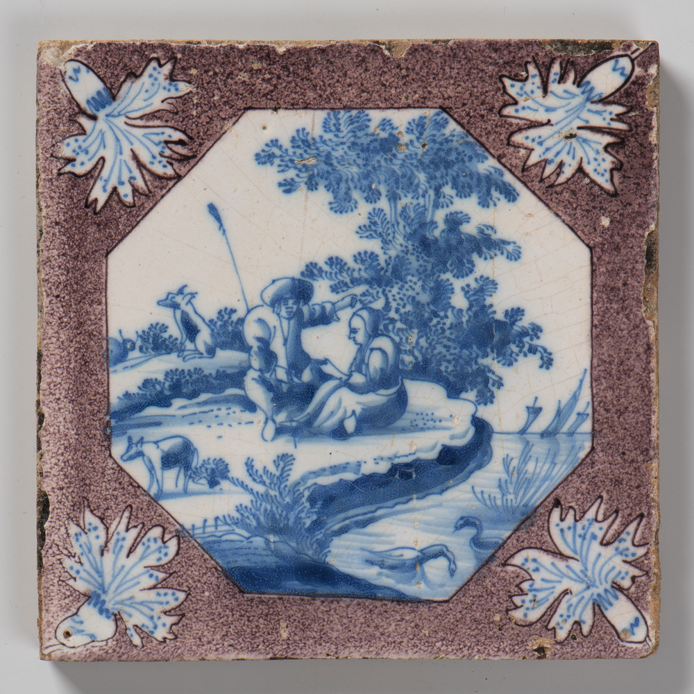 tegel van keramiek met tinglazuur, voorstellende: ru...