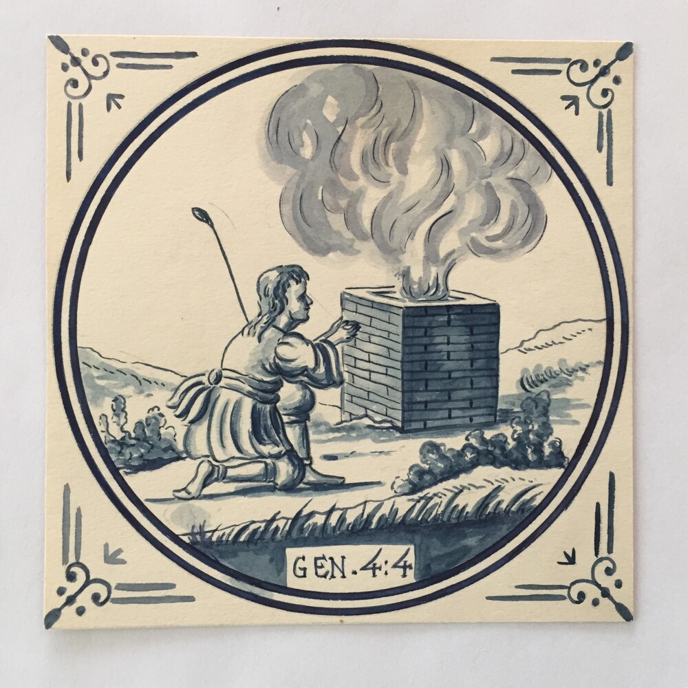 tegel van keramiek met tinglazuur, voorstellende: he...