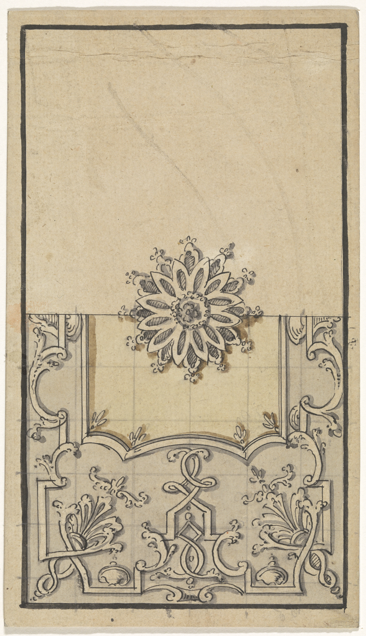 Rechthoekig veld met in het midden een rozet