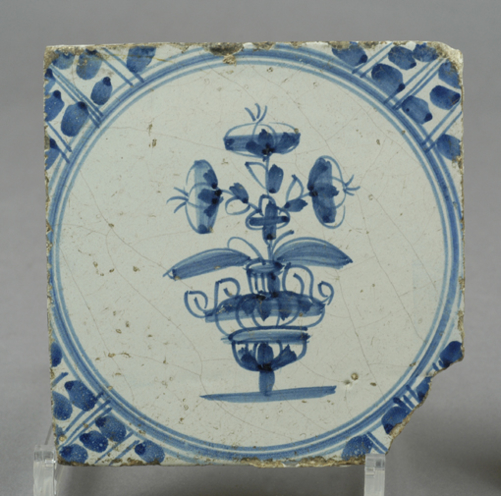Tegel van keramiek, tinglazuur, voorstellende een bl...