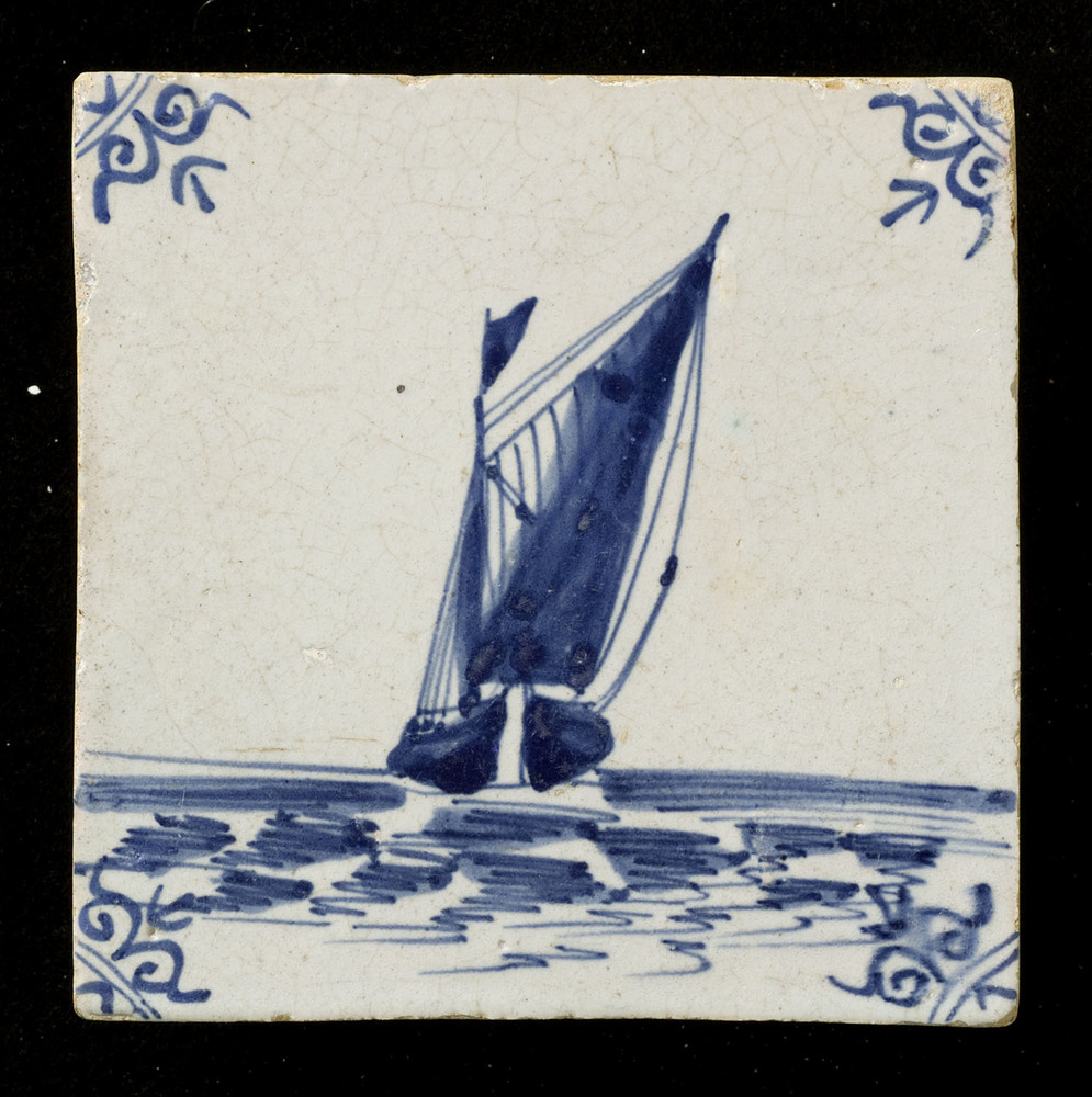 Tegel in tinglazuur, voorstellende éénmaster, binnen...