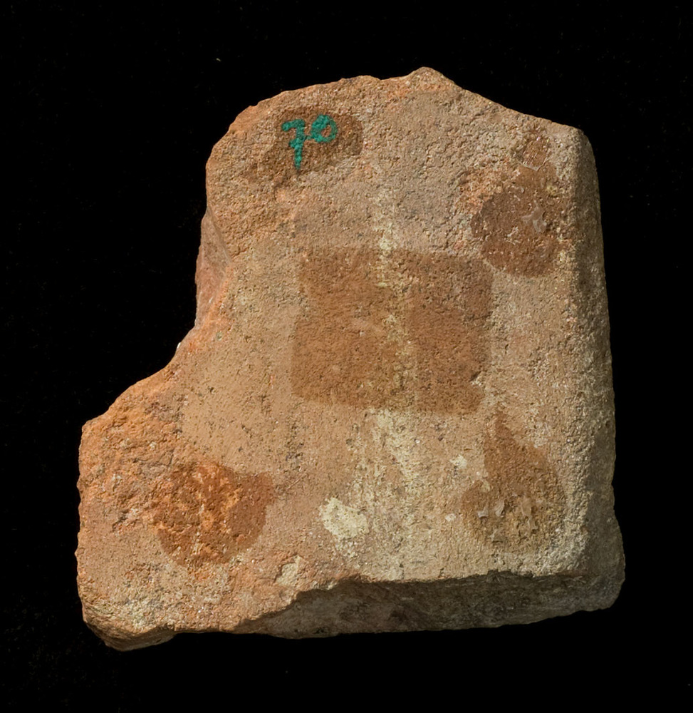 Scherf van keramiek, slib, gemaakt in Nederland ca. ...
