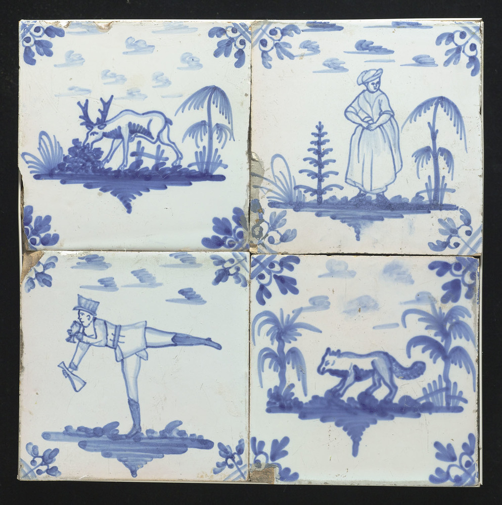 Tegelveld van keramiek, tinglazuur, voorstellende ee...