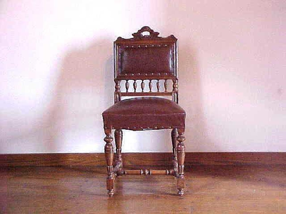 Stoel van eikenhout, bekleed met bruin kunstleer, 18...