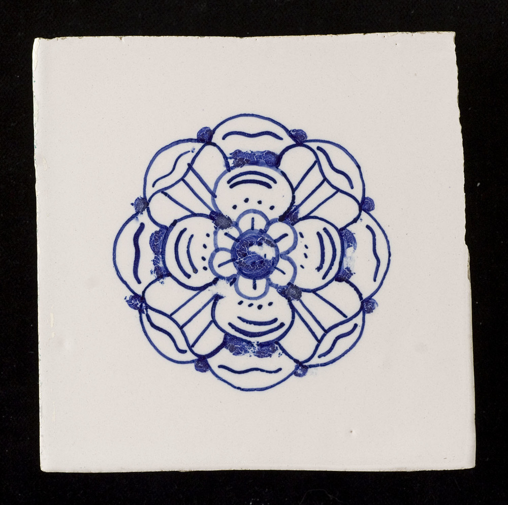 tegel van keramiek met tinglazuur, voorstellende: bl...