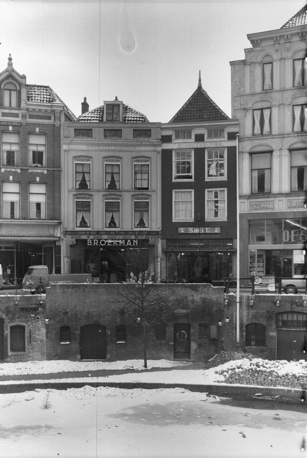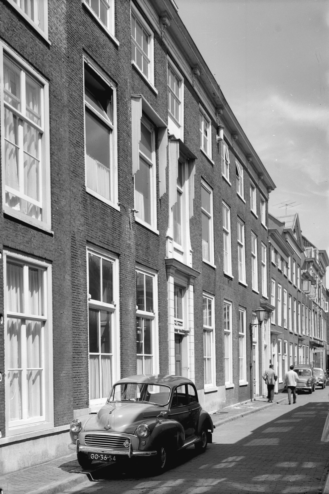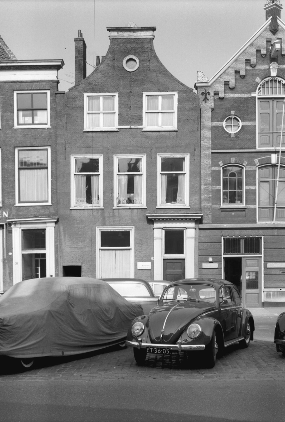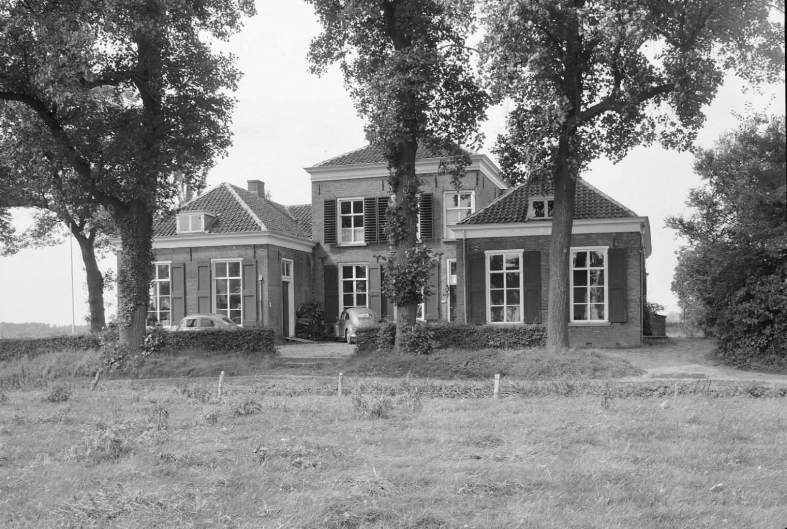 Voorgevel, langs gracht geparkeerde auto op de voorg...
