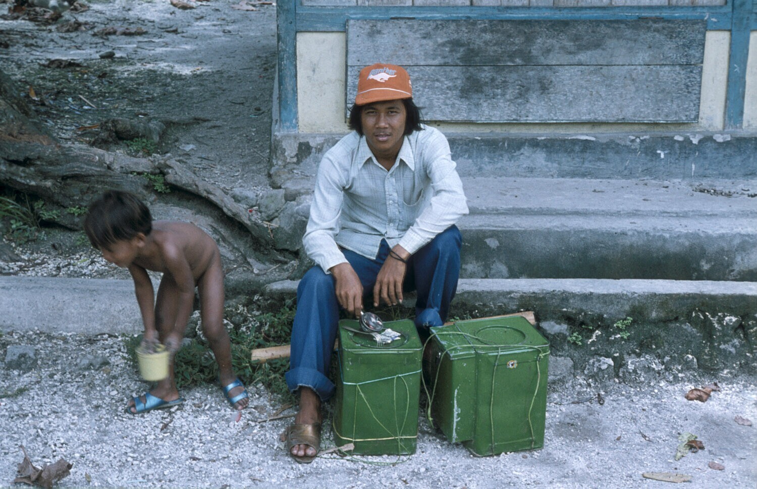 Spelende tweeling in Tulehu op Ambon, Molukken.
