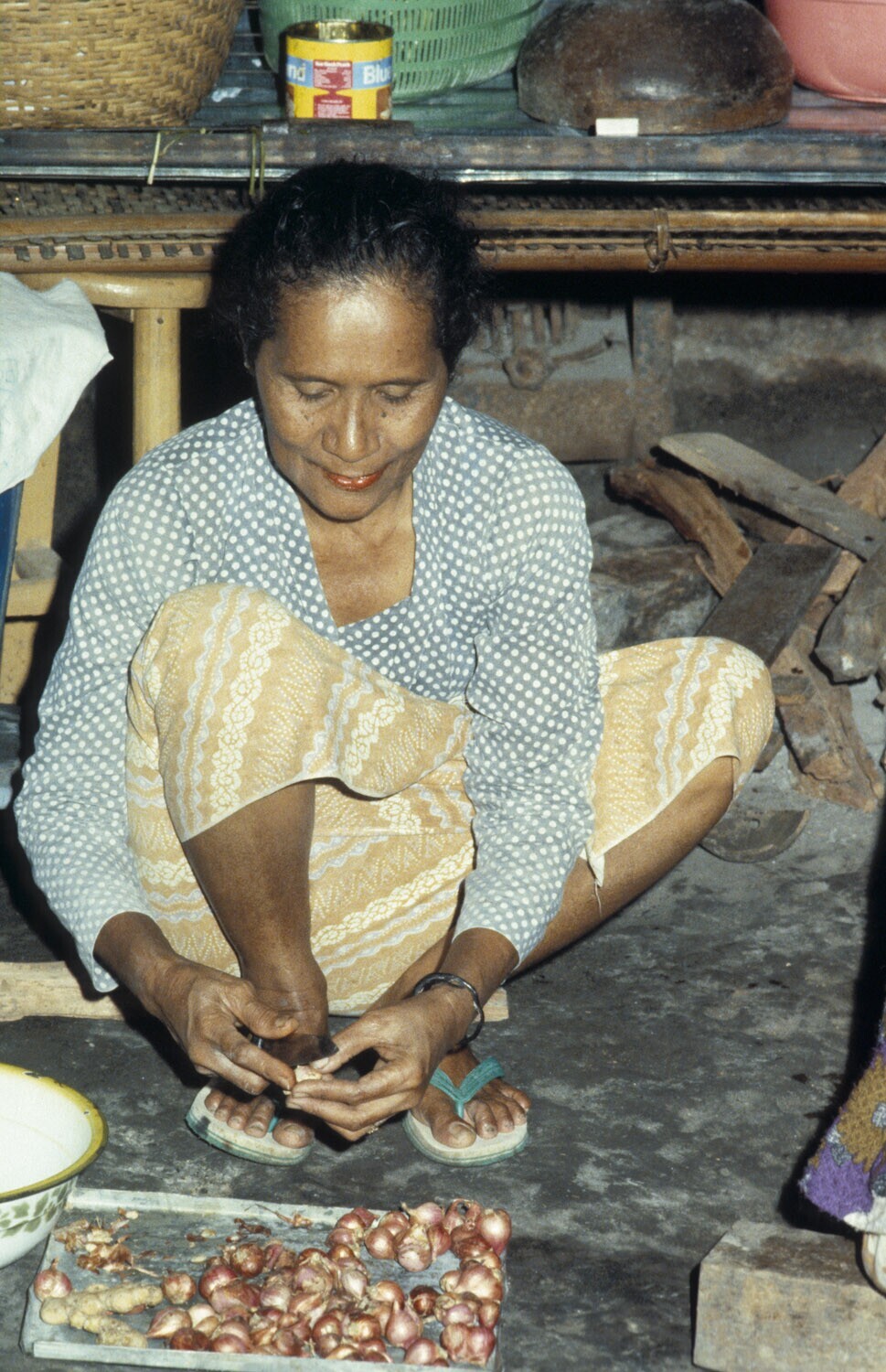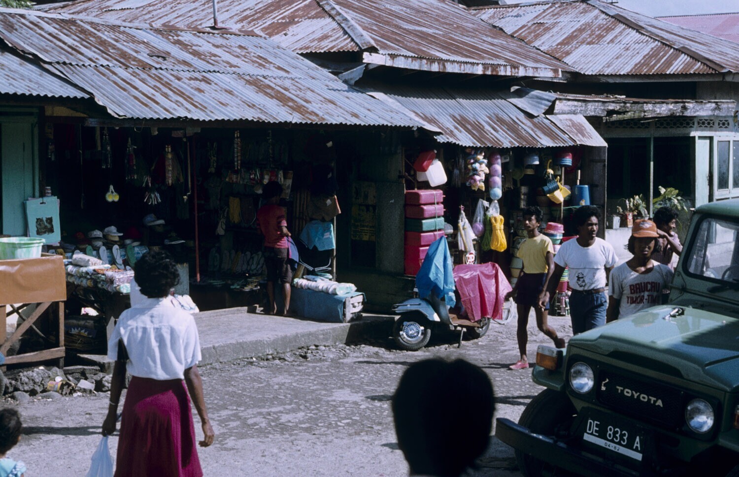 Plastichandel in een winkelstraat van Tulehu op Ambo...
