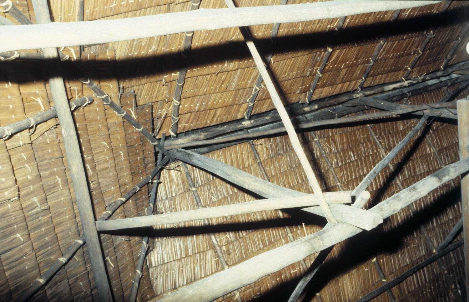 Dakkonstructie van een atapdak. Atap zijn palmblader...