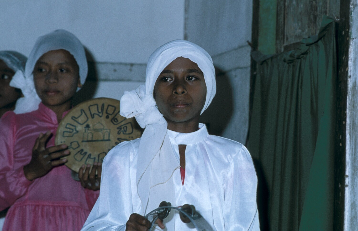 Meisje gekleed om naar godsdienstles te gaan. Tulehu...