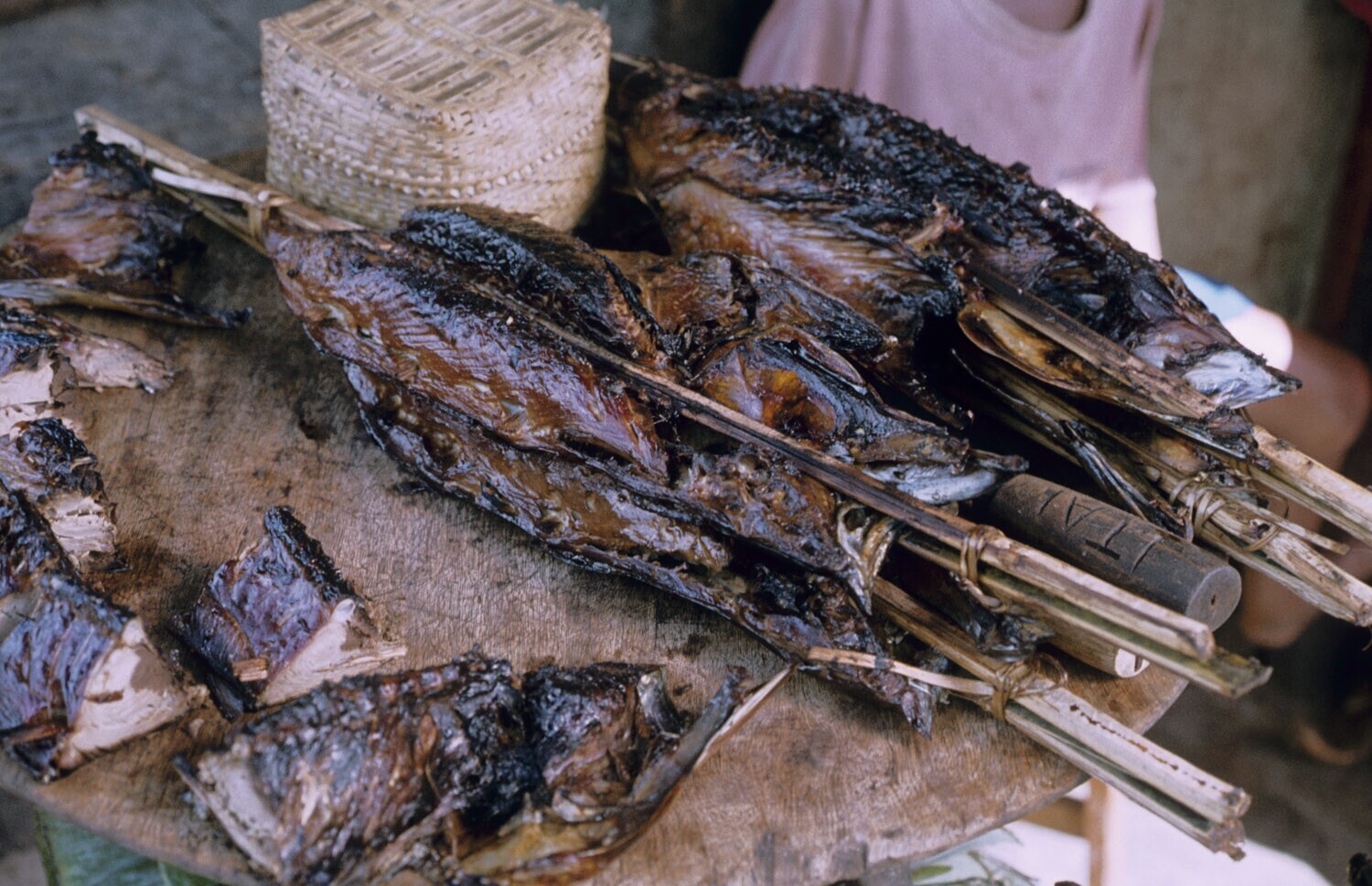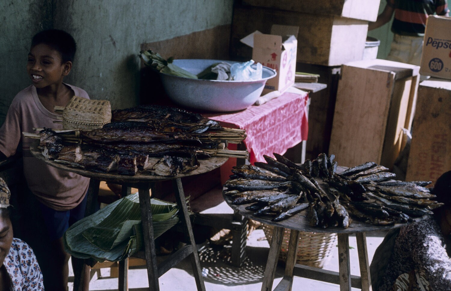 Ikan Asar, gerookte tonijn, te koop in Tulehu op Amb...