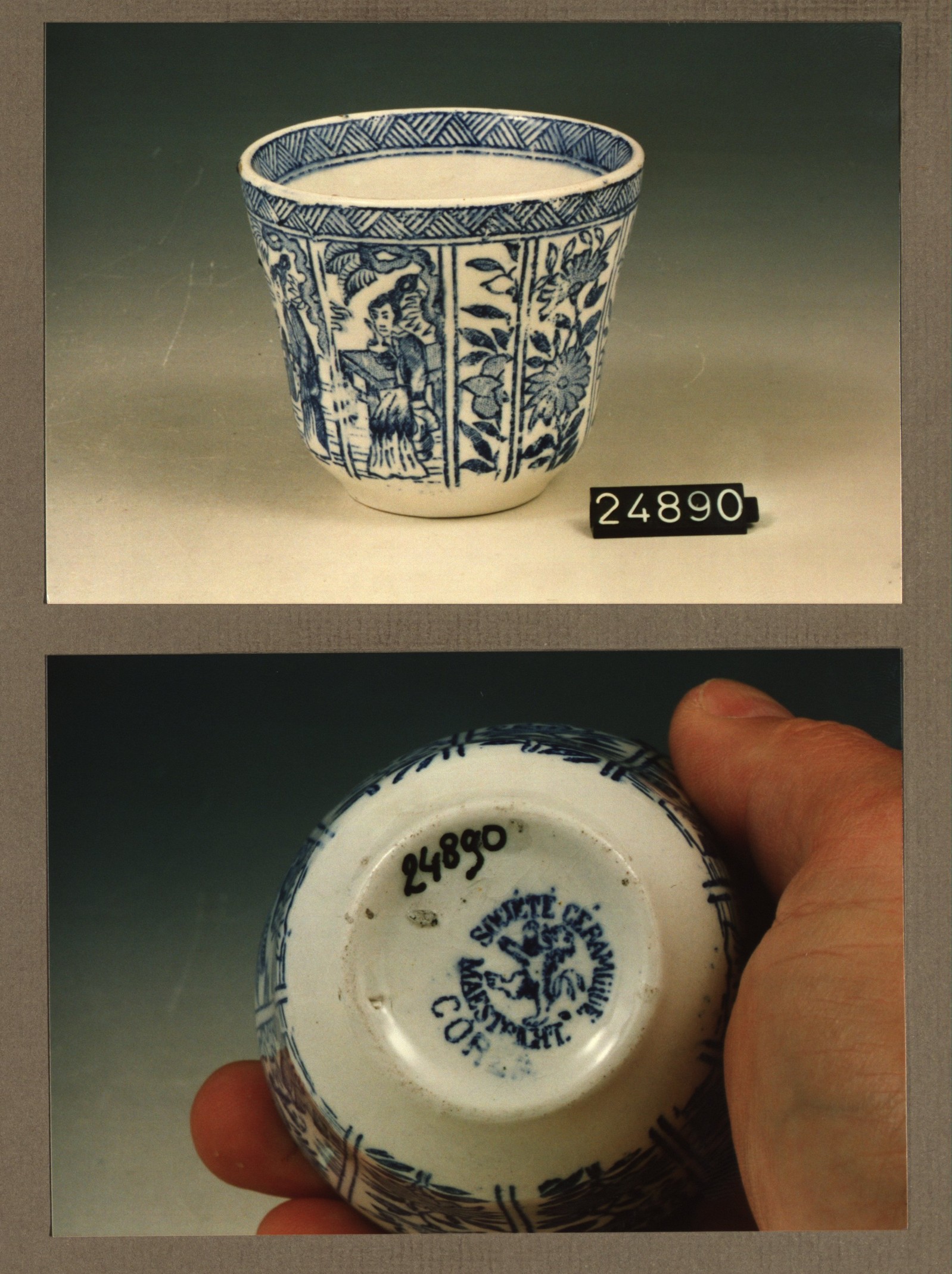 Kop en schotel, model Poire z/oor. met decor Dressadent