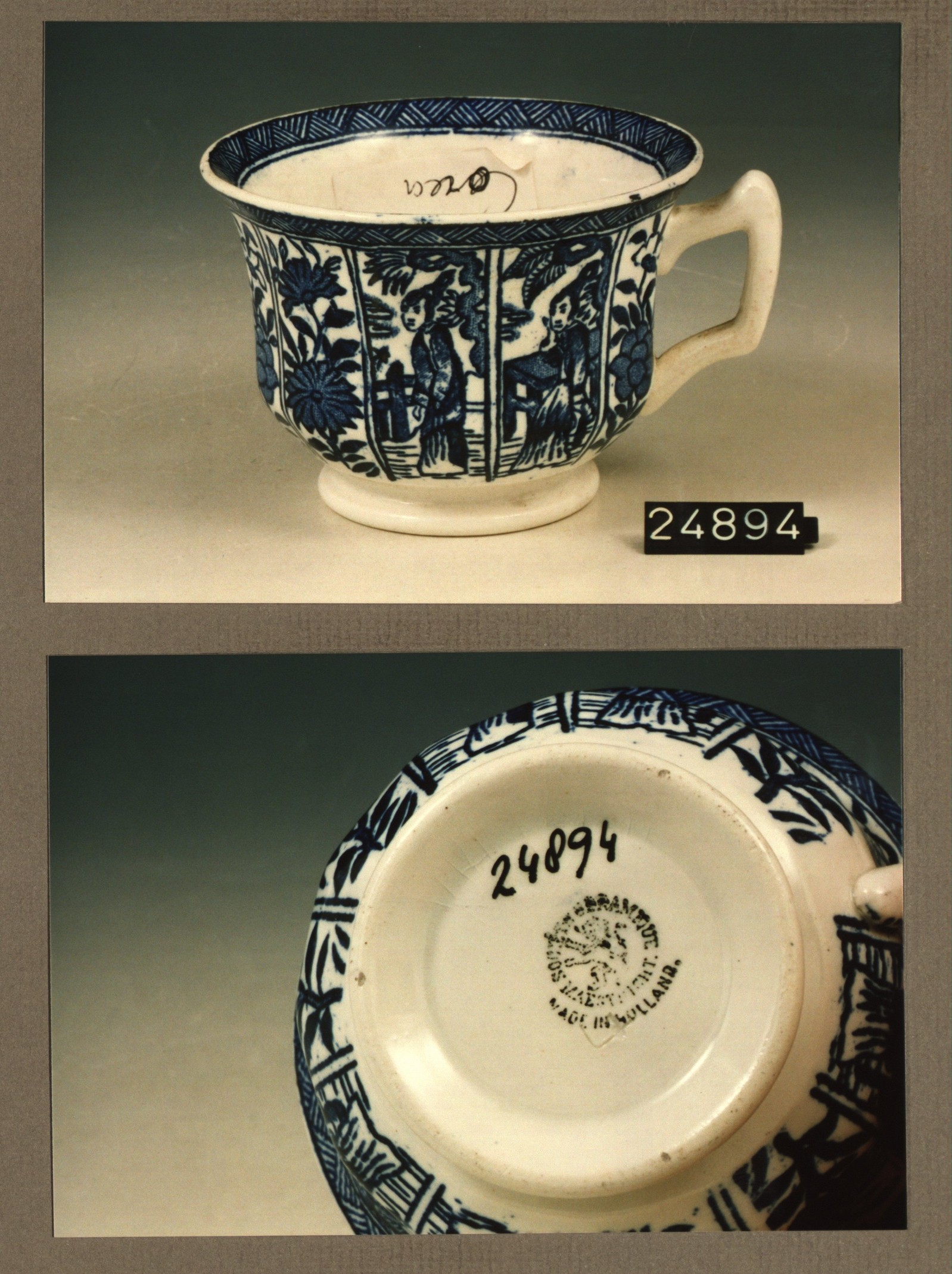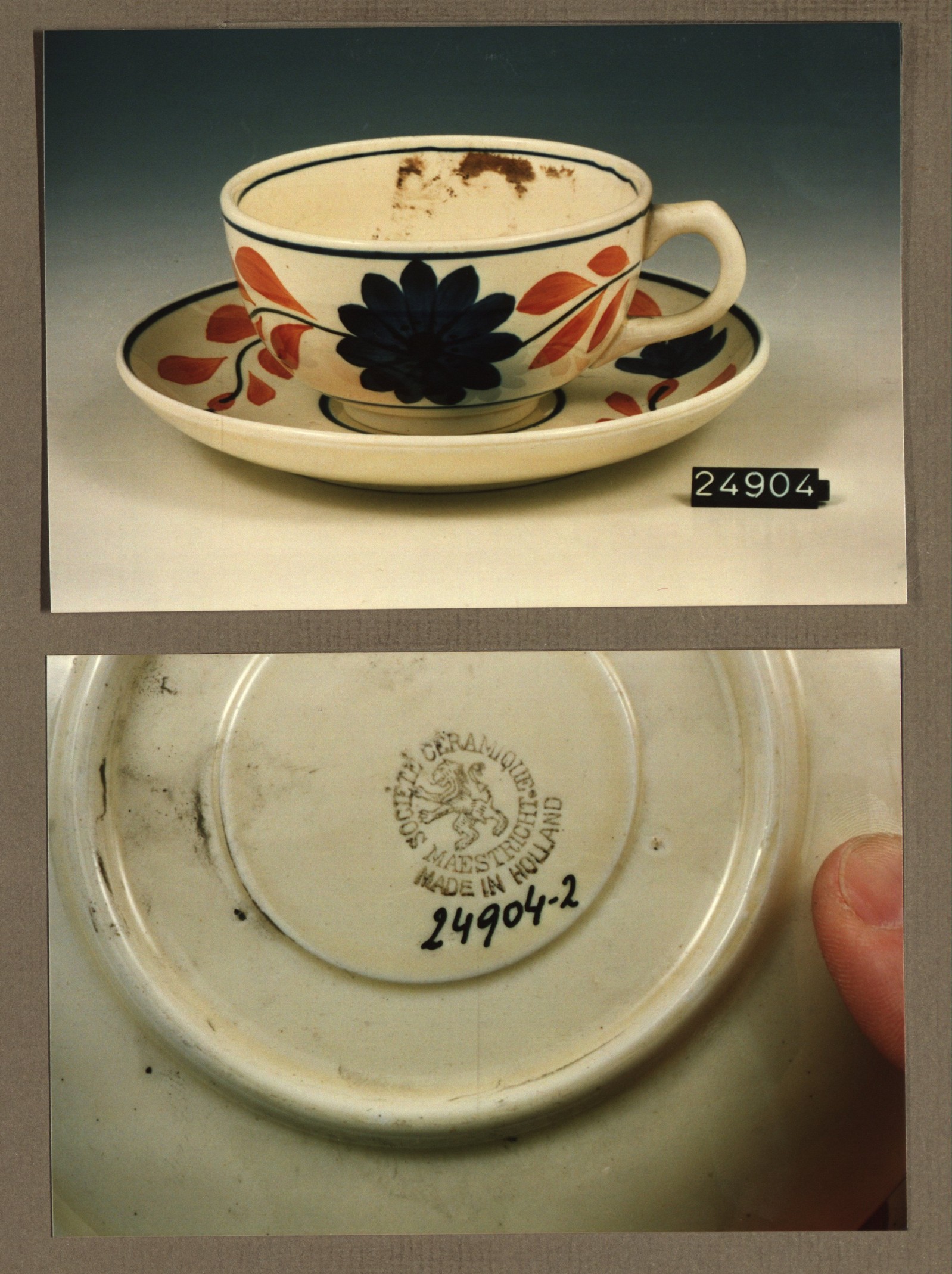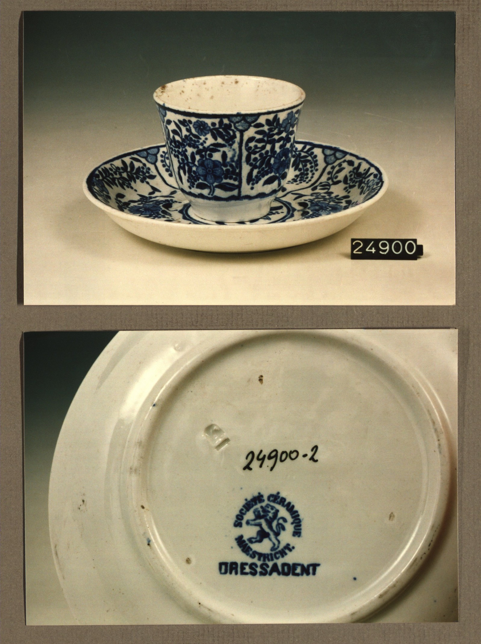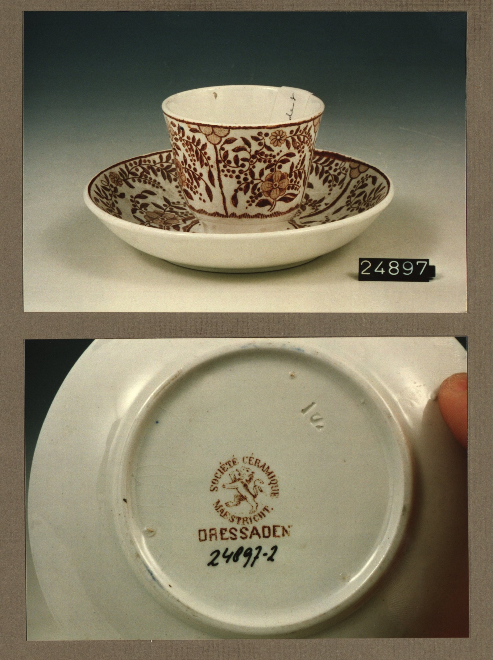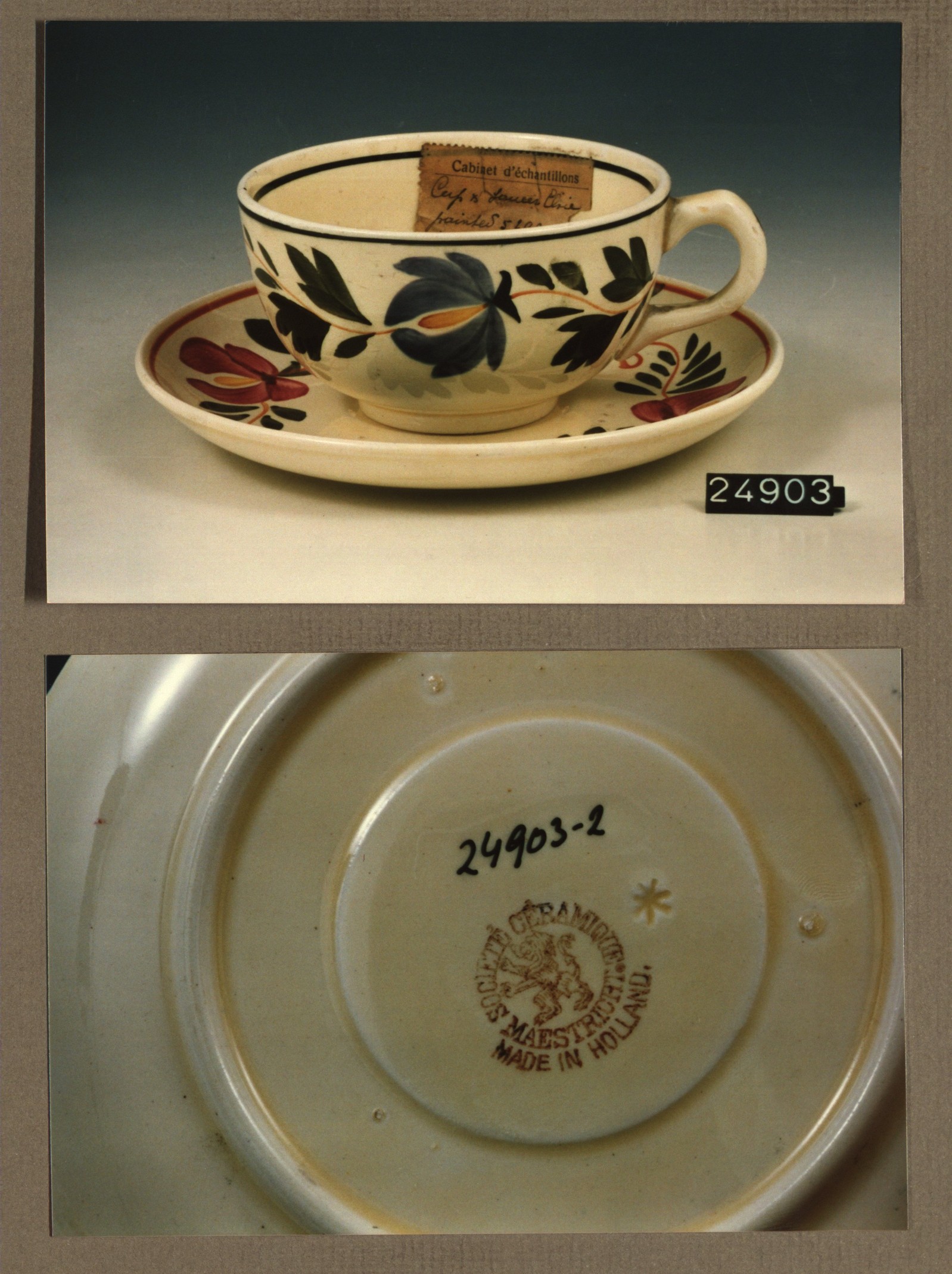 Kop en schotel, model Poire z/oor met decor Dressadent
