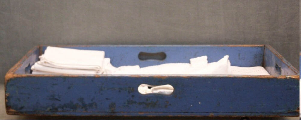 mangelbak van blauw geverfd hout, eerste kwart 20e eeuw