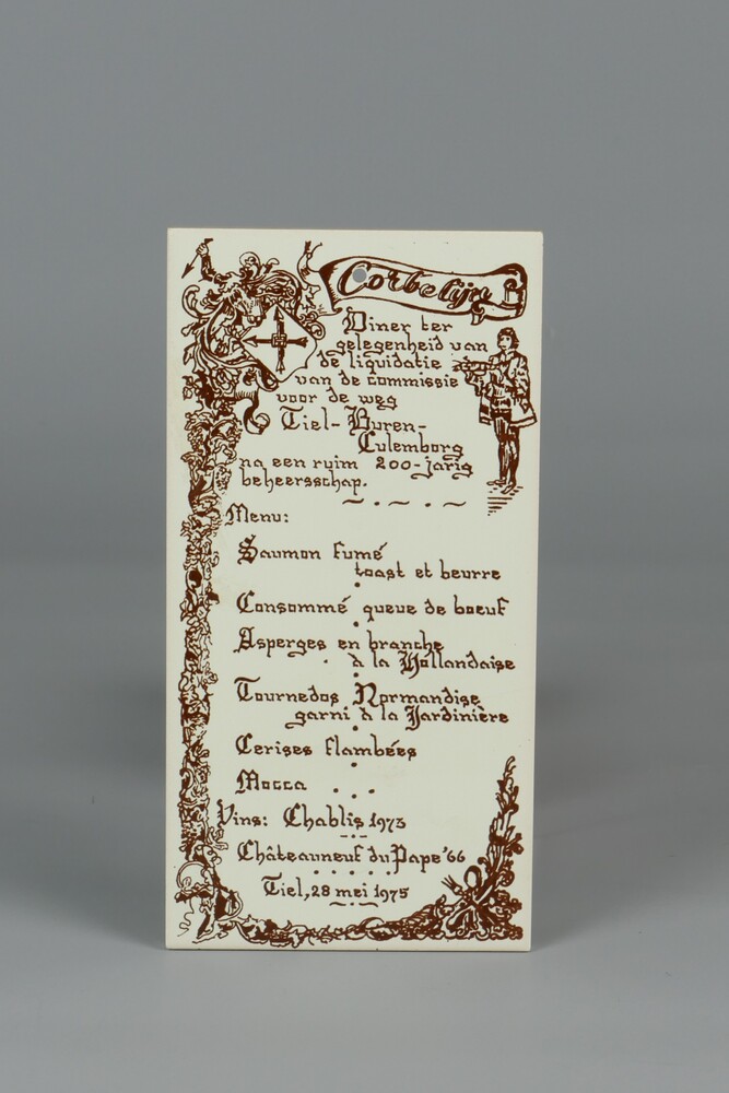 Tegel van wit bakkende klei met tekeningen en menu v...