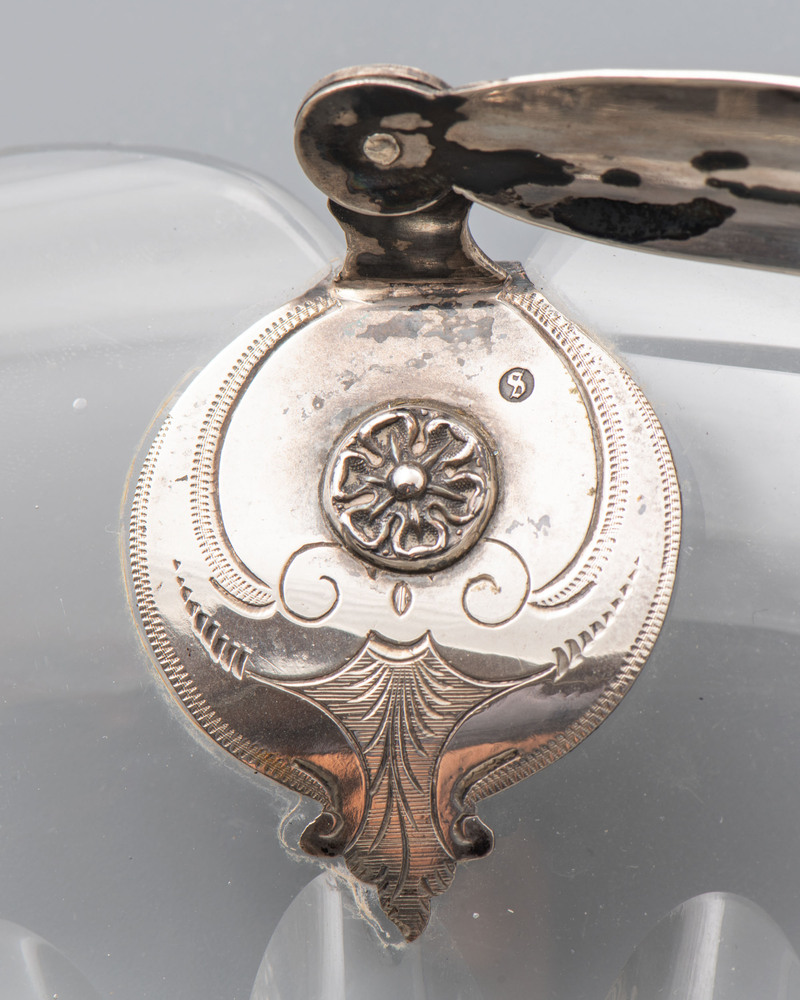 schaal van kristal met zilveren beugel, als geschenk...