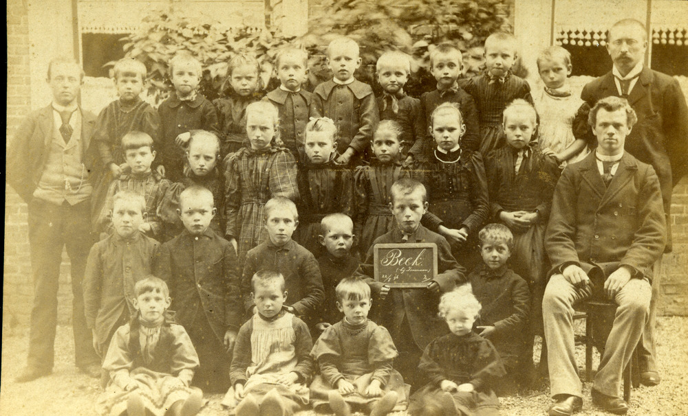 Zwart-wit foto van een klas in Beek door H.S. Frank ...