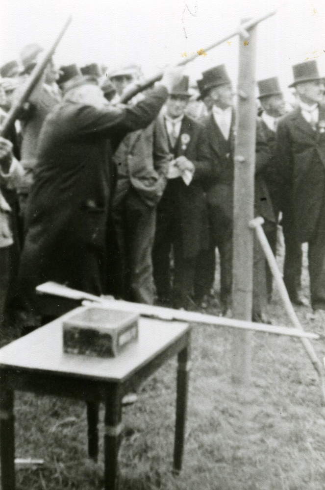 Zwart-wit foto van de kermis bij het schieten met de...