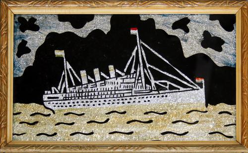Schilderij met passagiersschip van zilverpapier