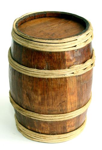 Miniatuur haringvaatje met ijzeren hoepels.