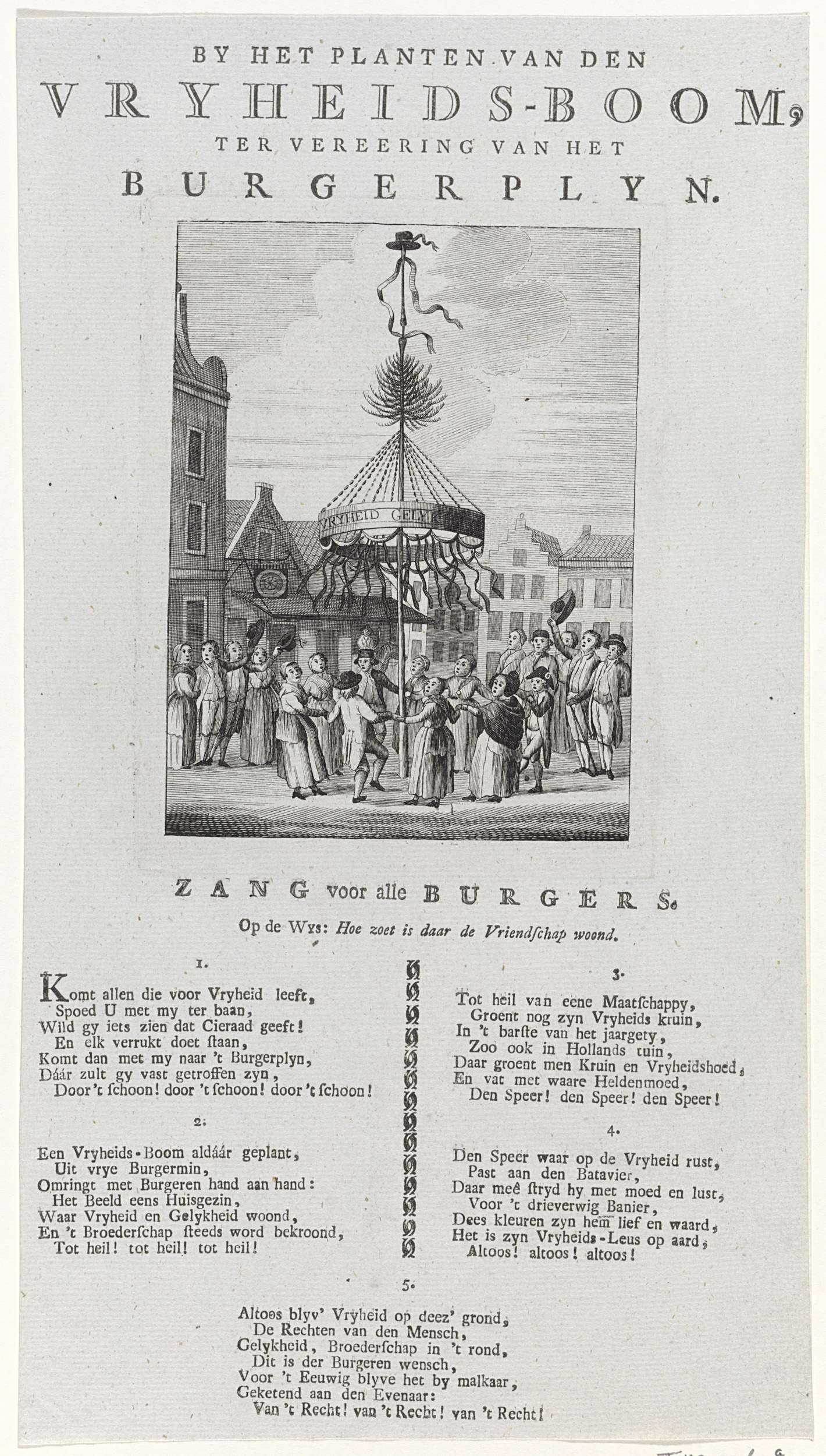 Vrijheidsboom op Burgerplein te Amsterdam, 1795