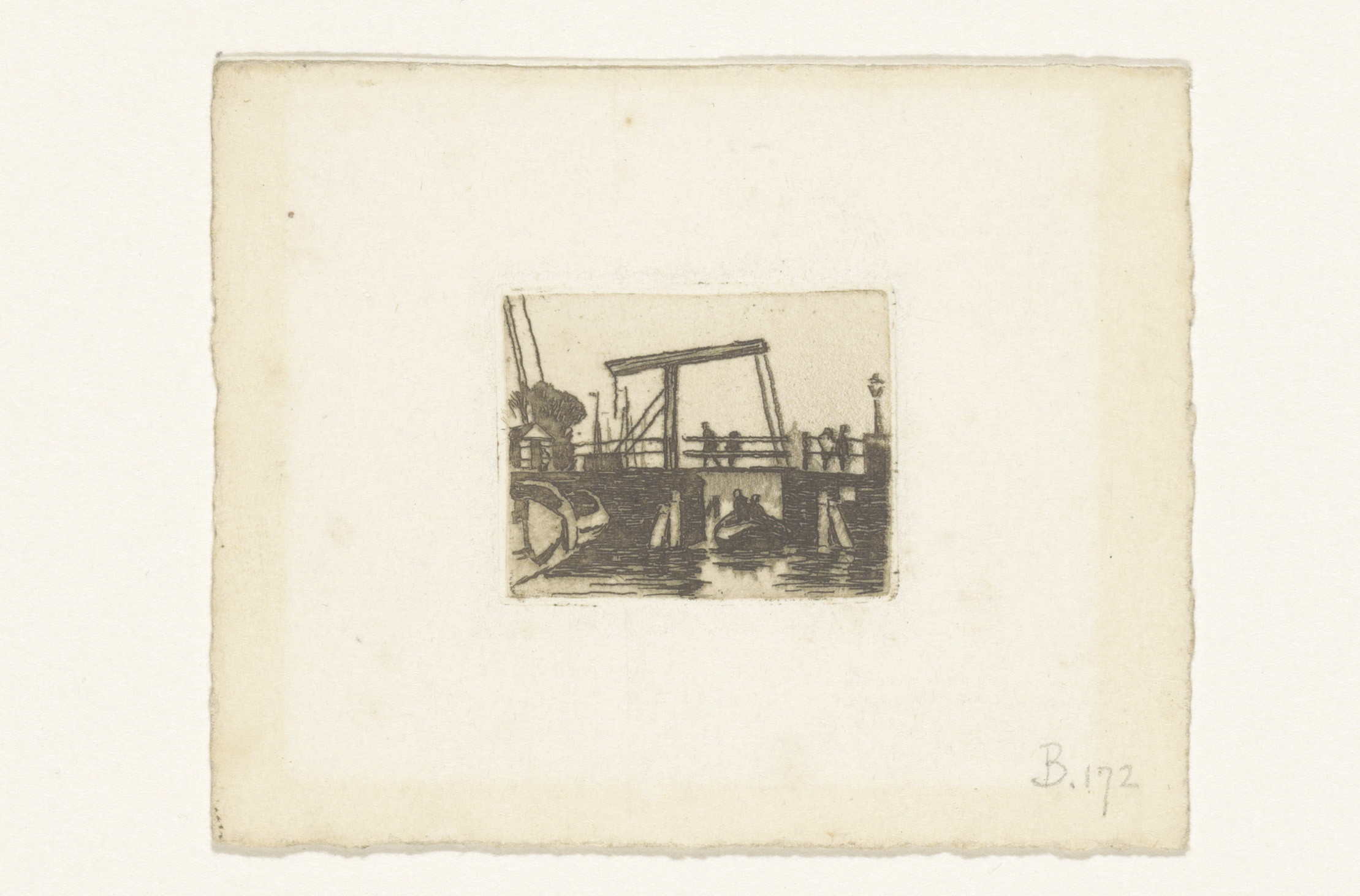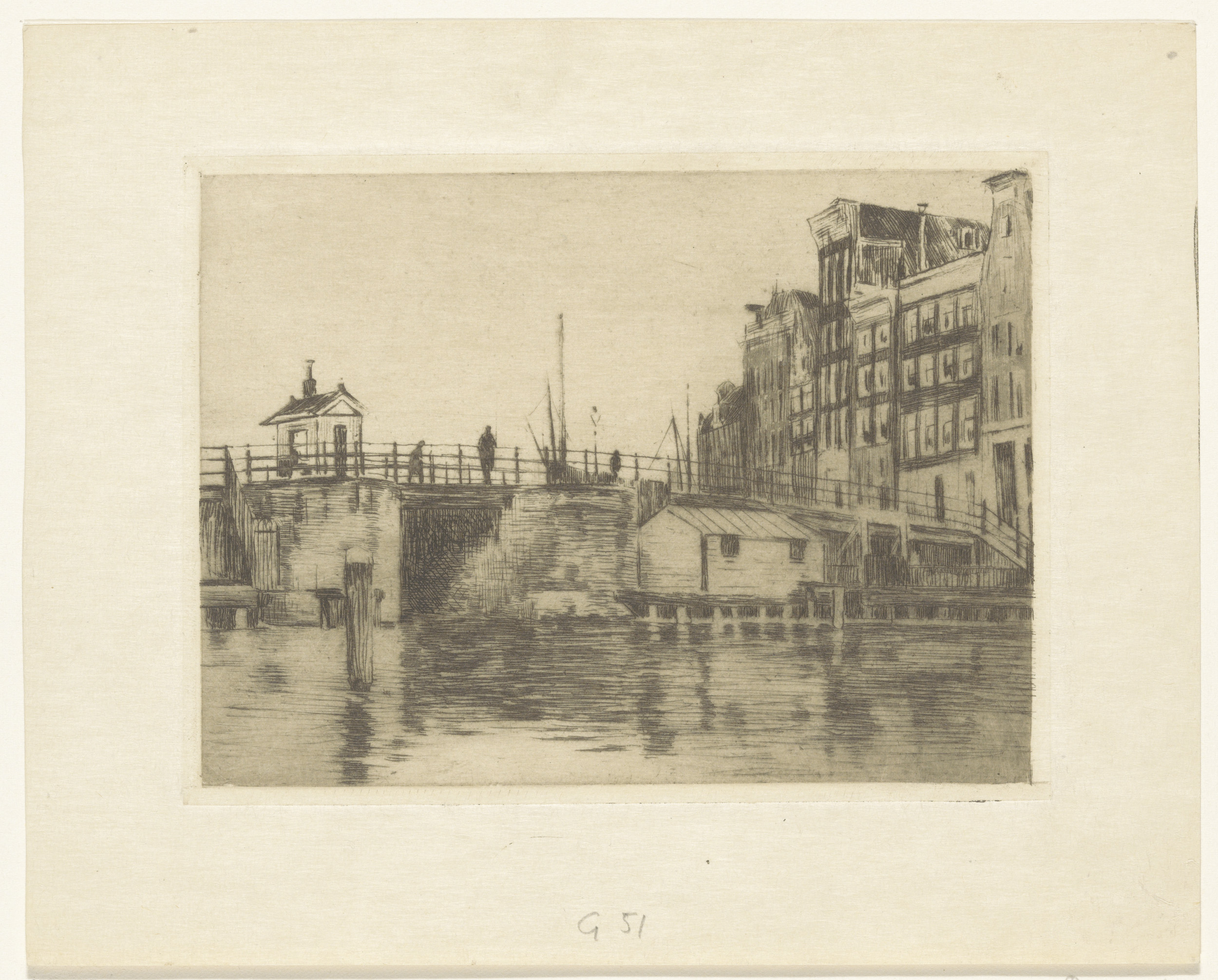 Gezicht op de ophaalbrug tussen de Kalkmarkt en het ...