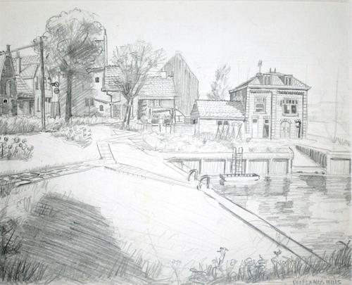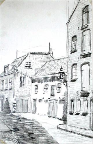 Potloodtekening. Havenstraat nabij sluizen. Vlaardin...