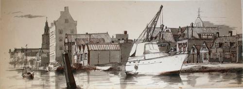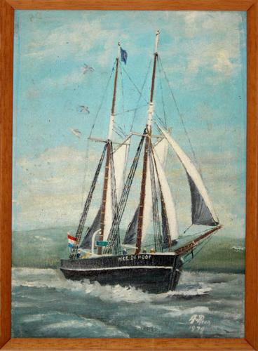 Olieverf schilderij. Hospitaalkerkschip HKS De Hoop.