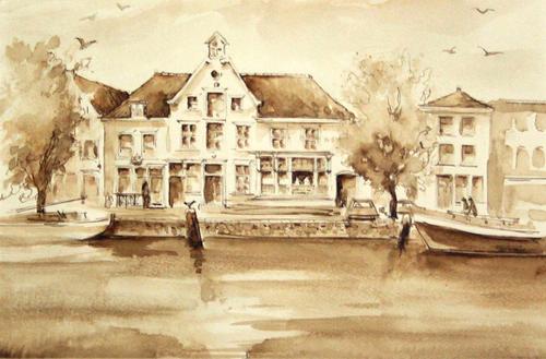Aquarel met pen. ‘Welgelegen’ ‘Harlingen’ VL70 Astrid