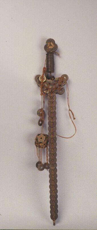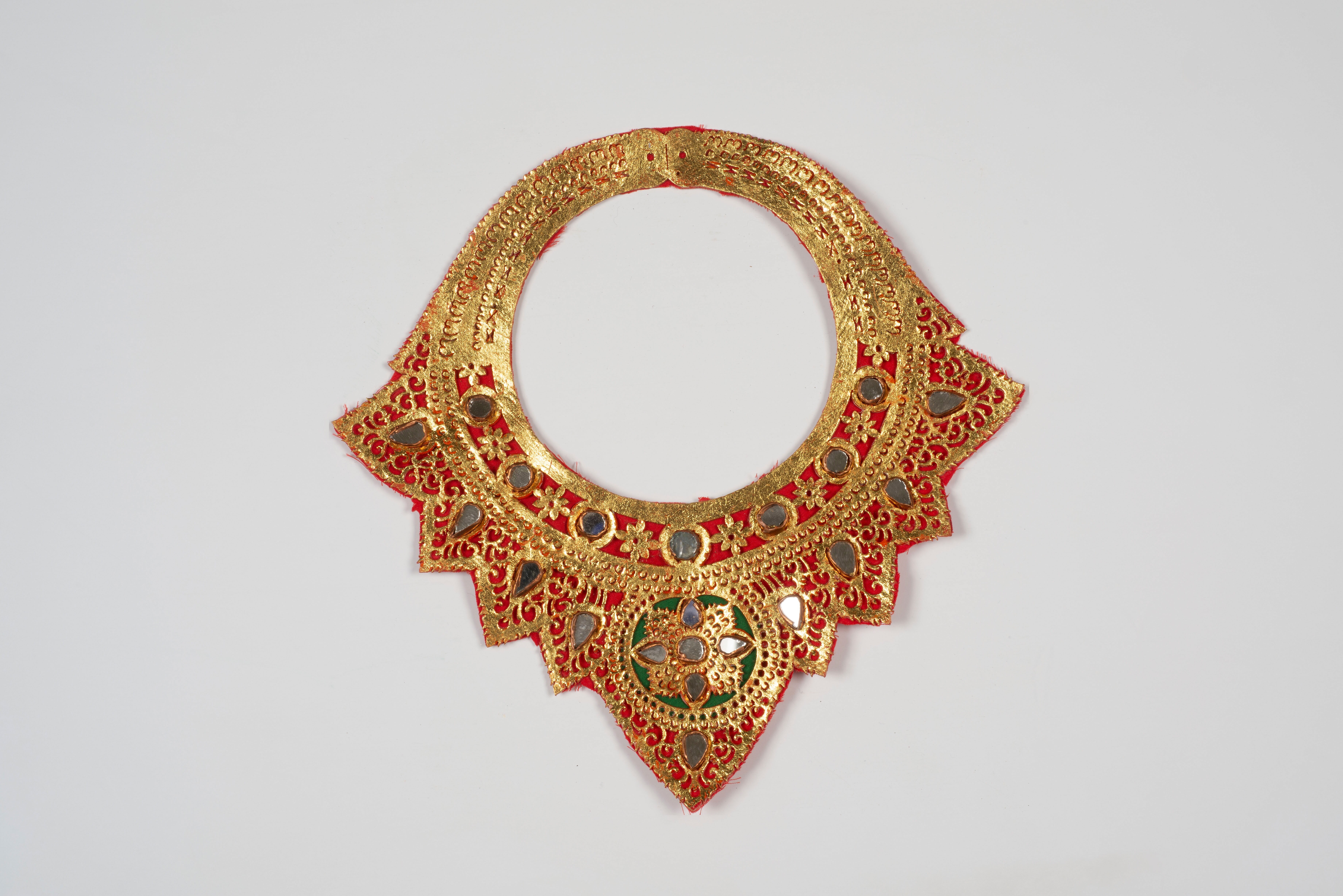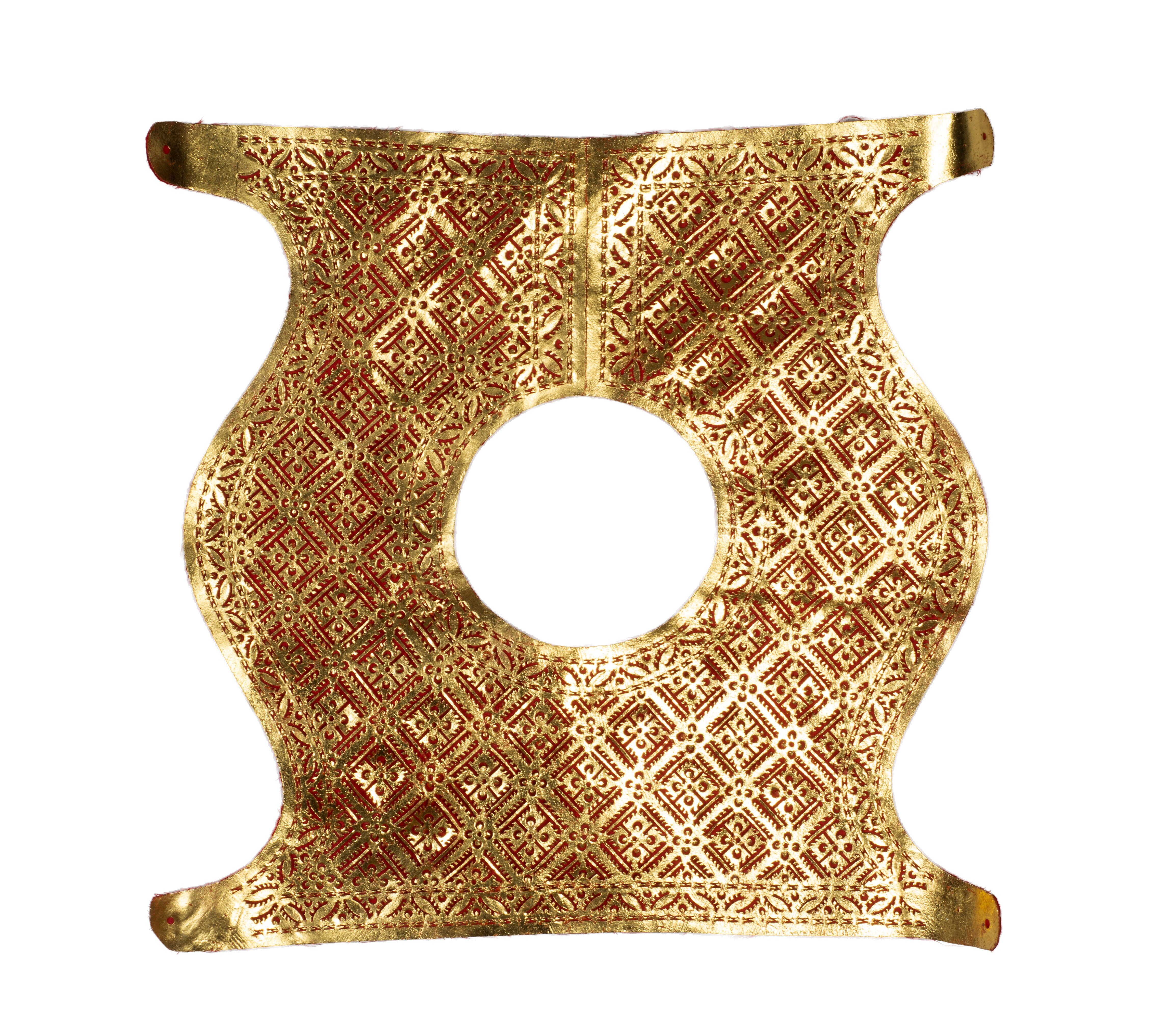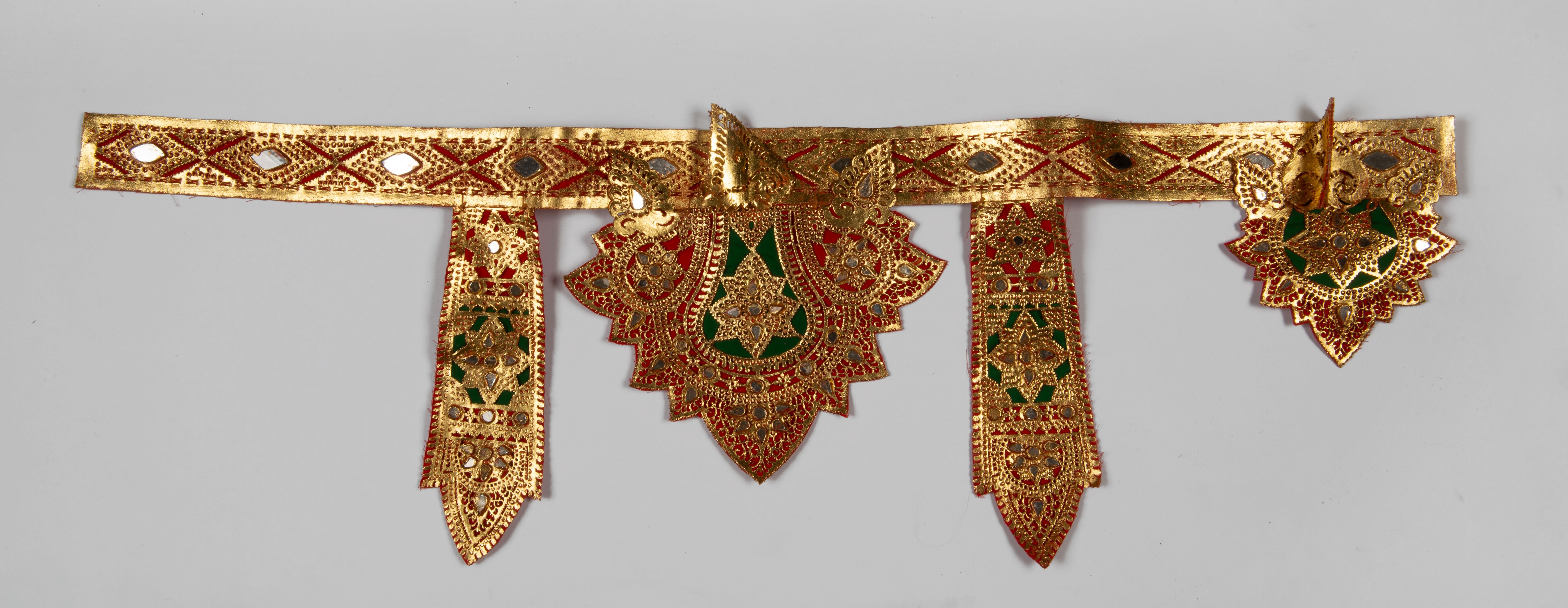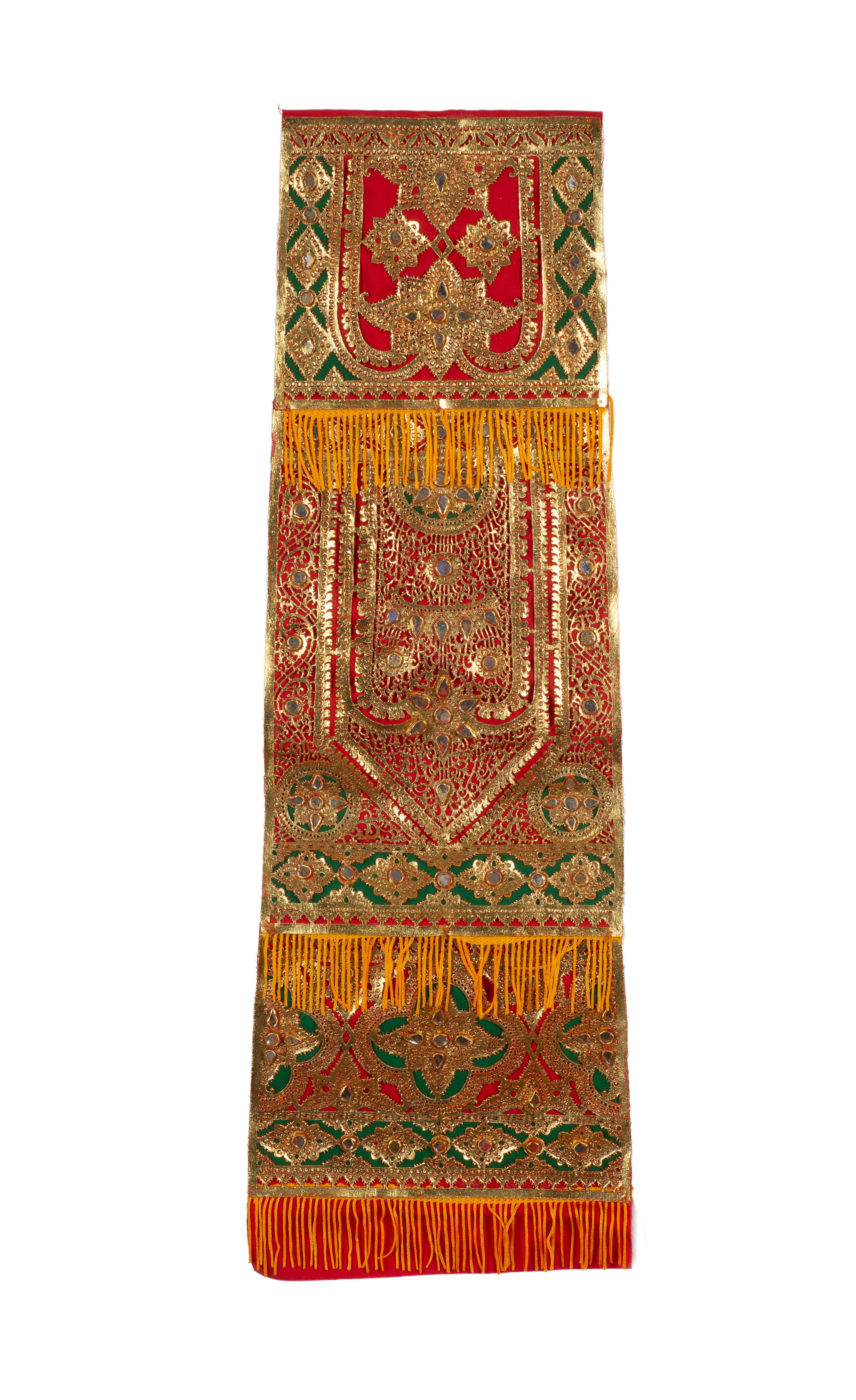 Danskostuum; afhangende baan, middenvoor vanaf midde...