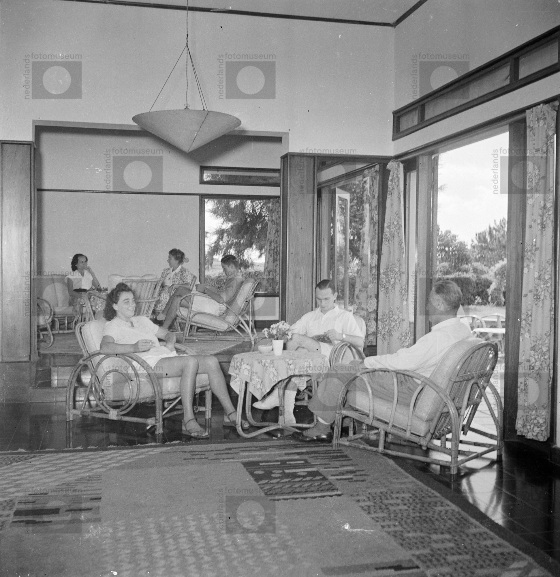 Nederlanders zitten in de recreatiezaal van een vill...