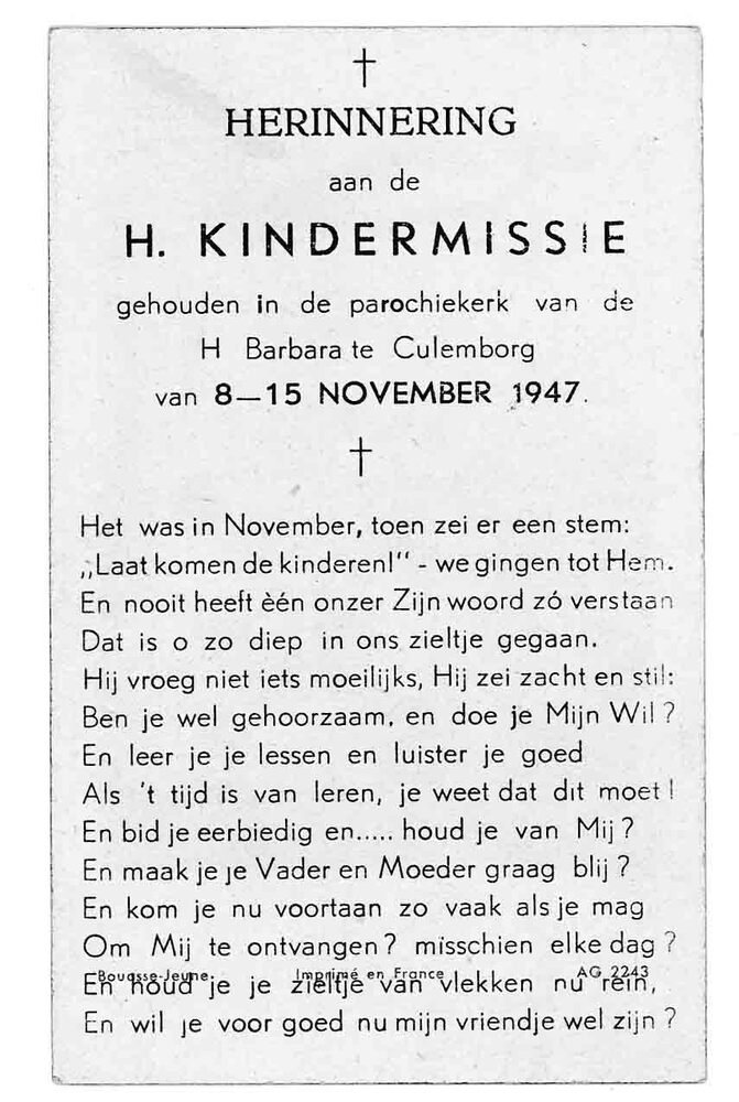 gedachtenisprent voor de H. Kindermissie gehouden in...