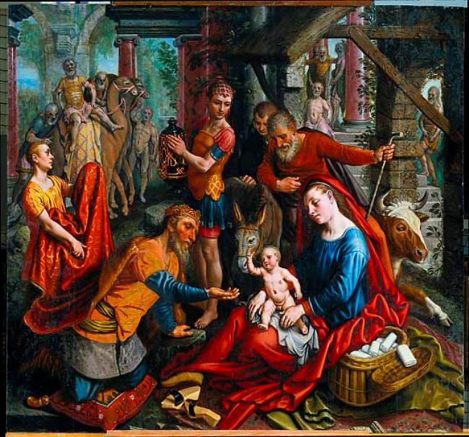 De Aanbidding der Koningen (middenpaneel van een tri...