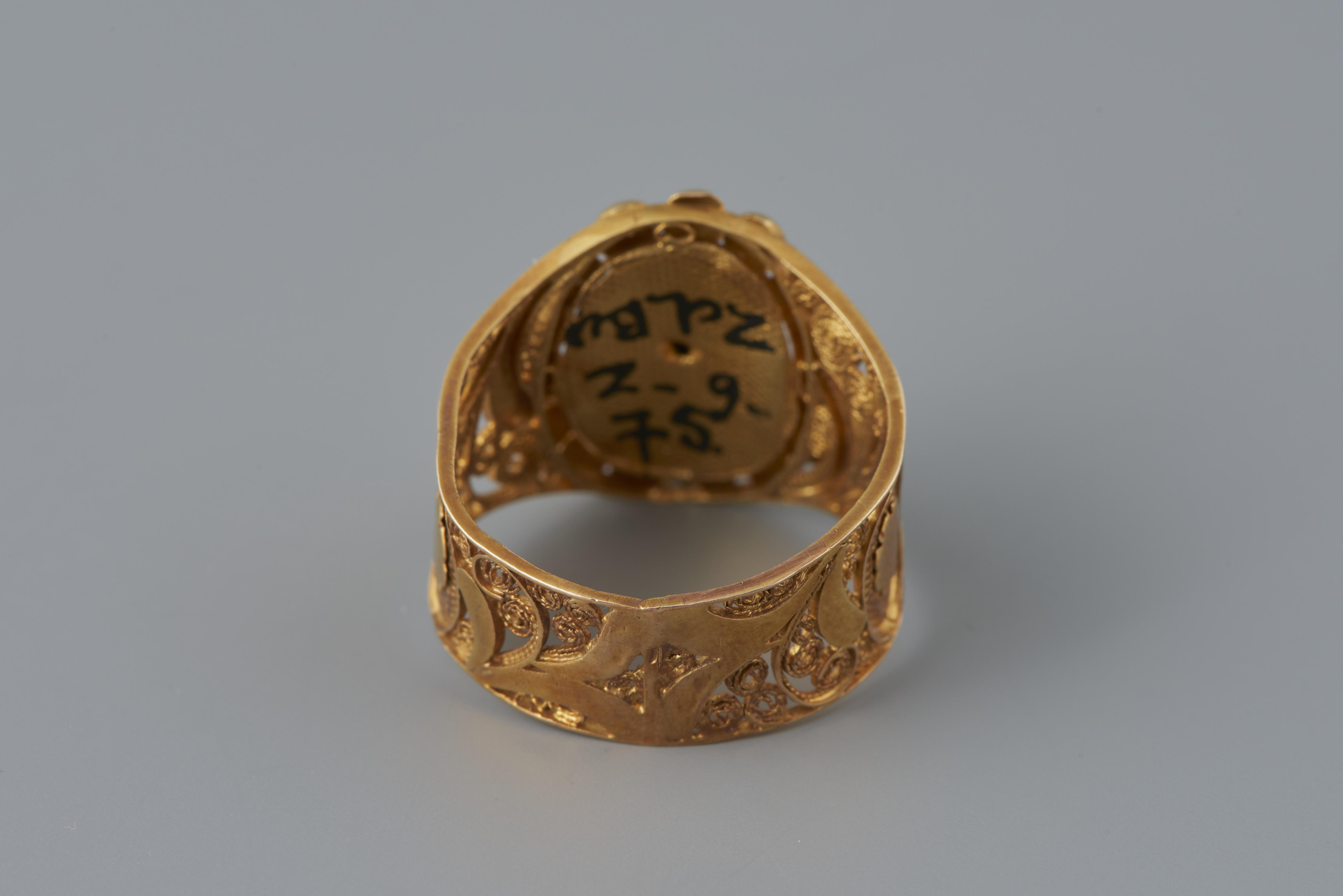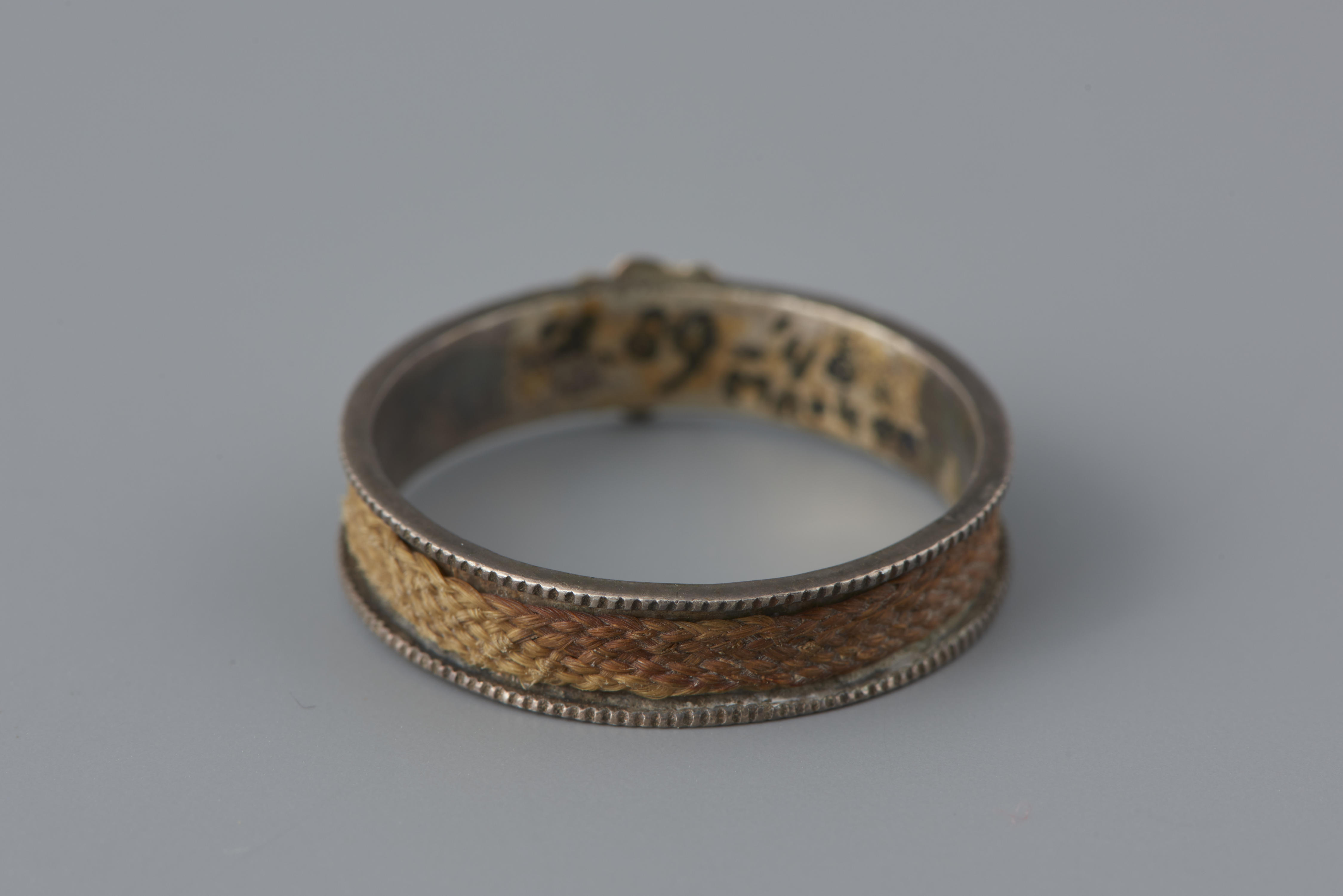 Zilveren ring met haarlok en gouden plaatje, Marken