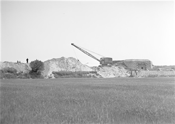 Opruimen van bunkers bij de haven van Goedereede, 1955