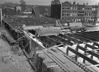 Bouw van viaduct Sint Sebastiaansbrug in Delft, 1962
