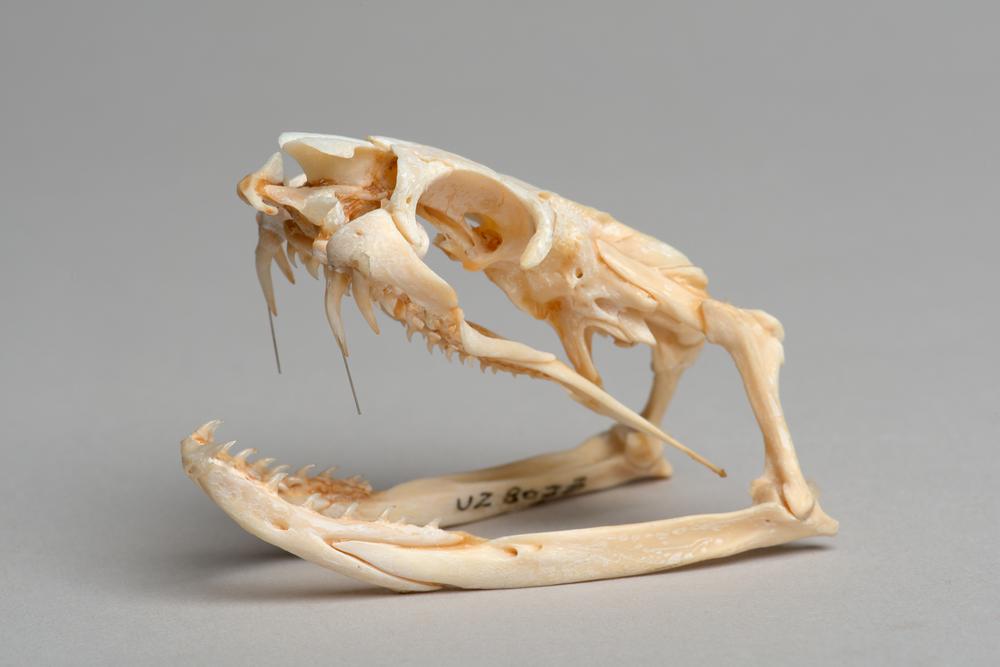 Schedel met onderkaak van een slang