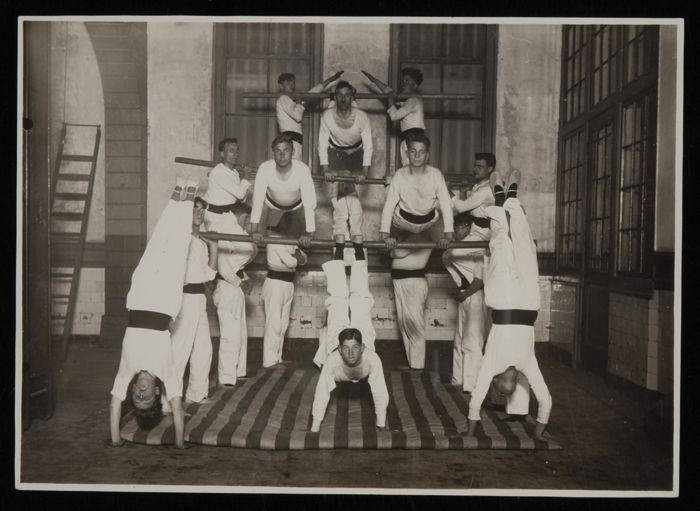 Zwart-wit foto met turnvereniging van weesjongens va...