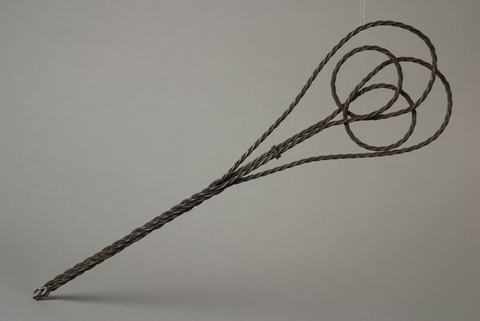 Zilverkleurige mattenklopper met gedraaide steel