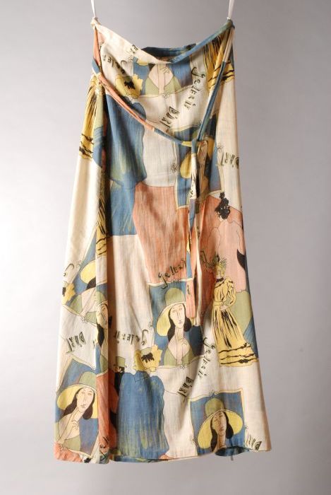 Kleurige katoenen wikkelrok met figuren uit schilderij