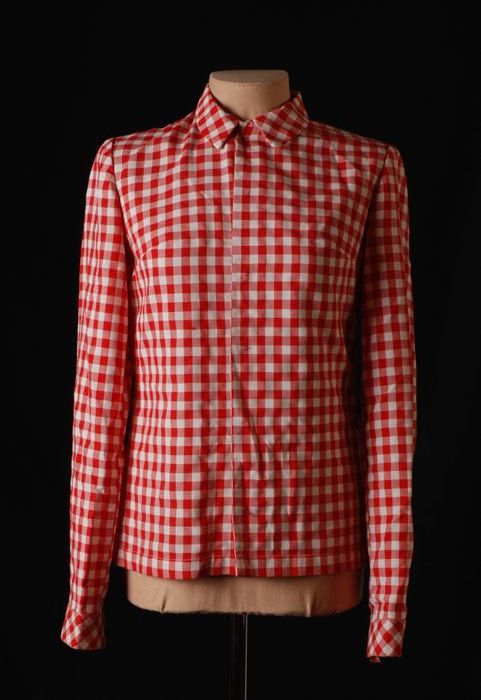 Meisjes overhemdblouse van rood-wit geblokt katoen