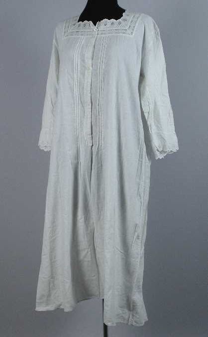 Knielange nachtjapon van wit katoen met broderie lan...