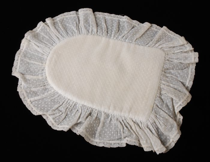 Serveerhandschoen, soort flanellen want (1) met erov...