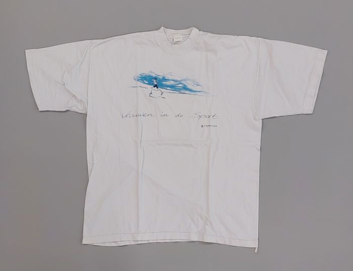 Wit T-Shirt met opdruk in blauw en zwart, "Vrouwen i...