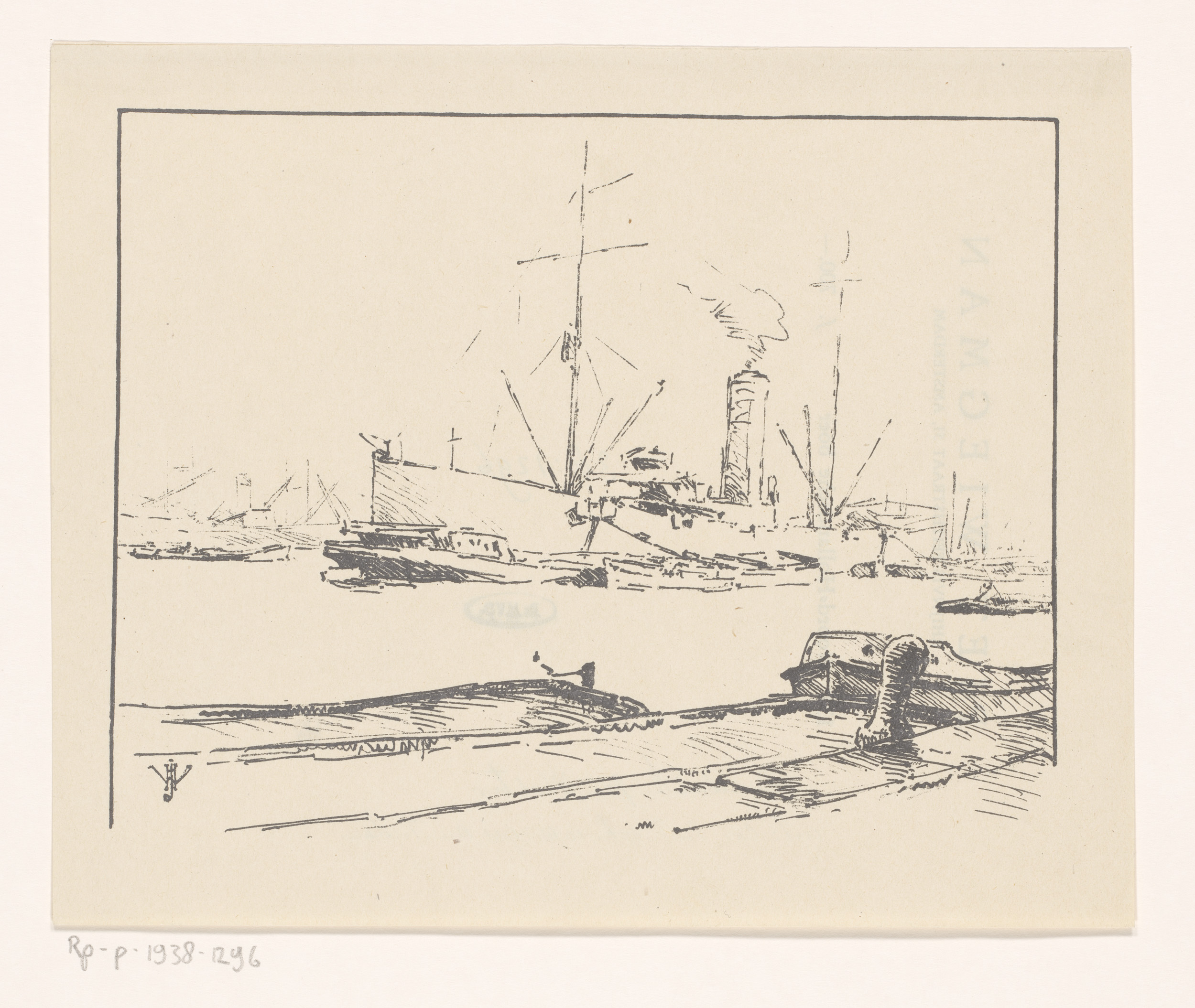 Reproductie van: Havengezicht met schepen