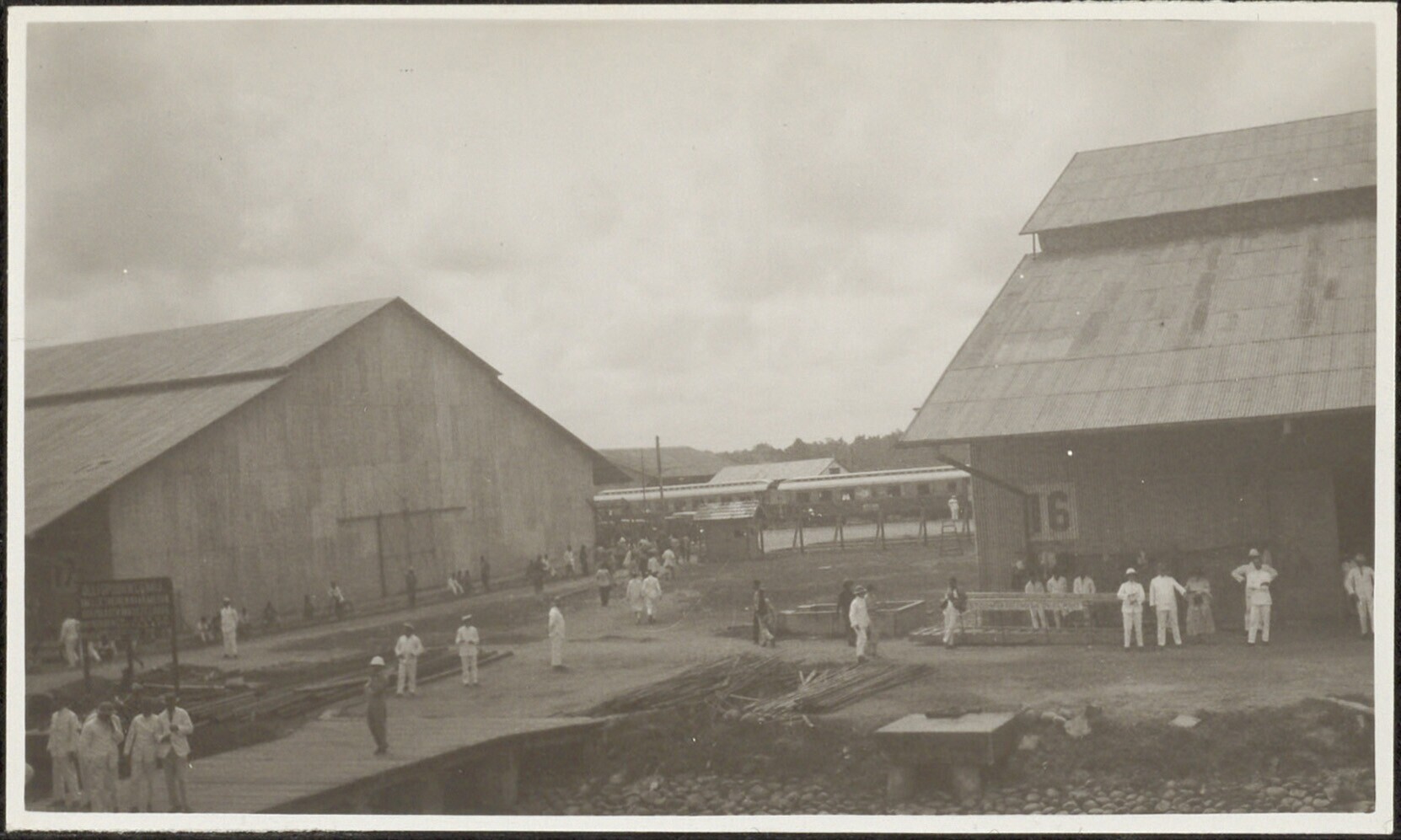 Plantage met links een droogschuur