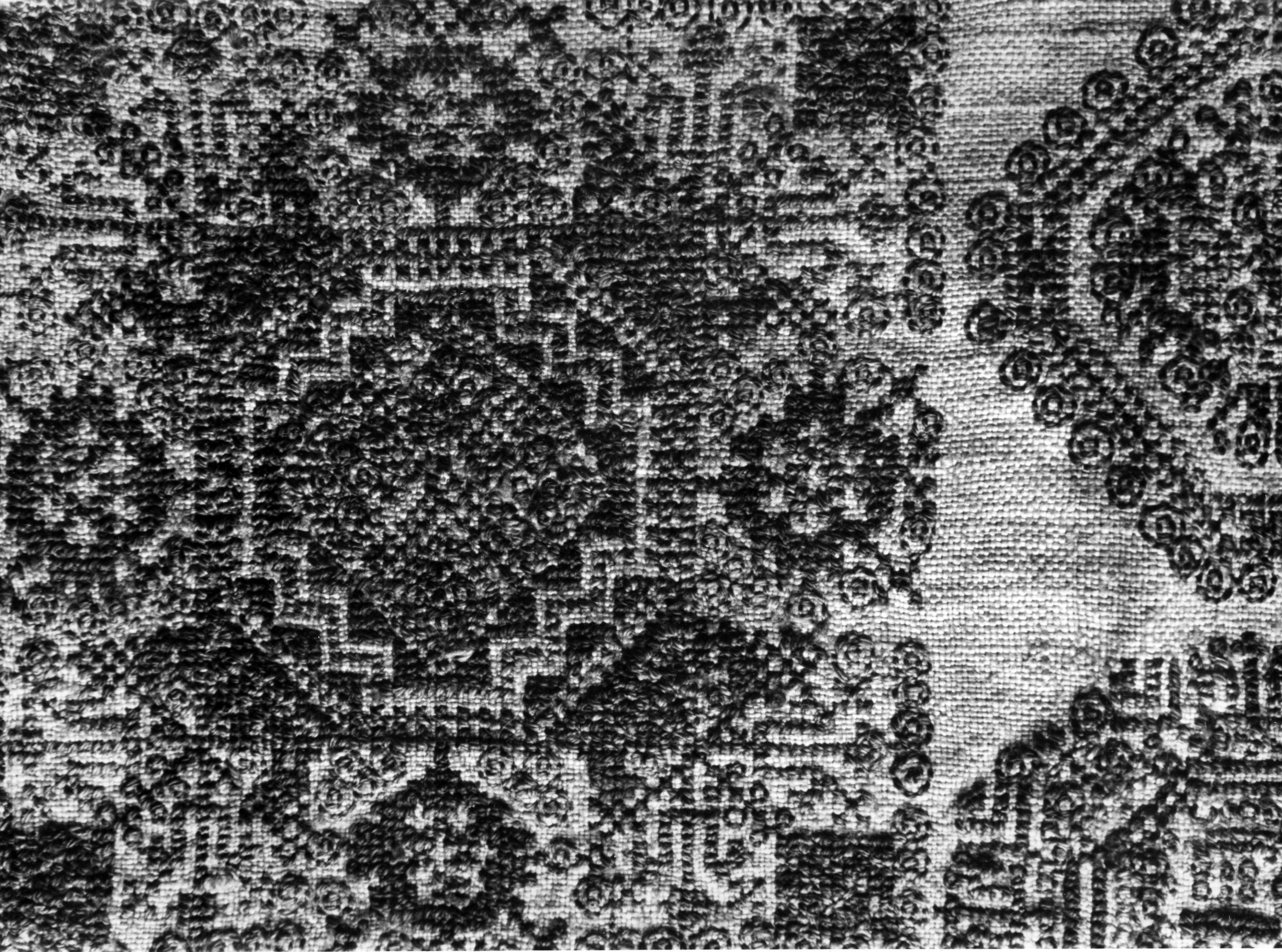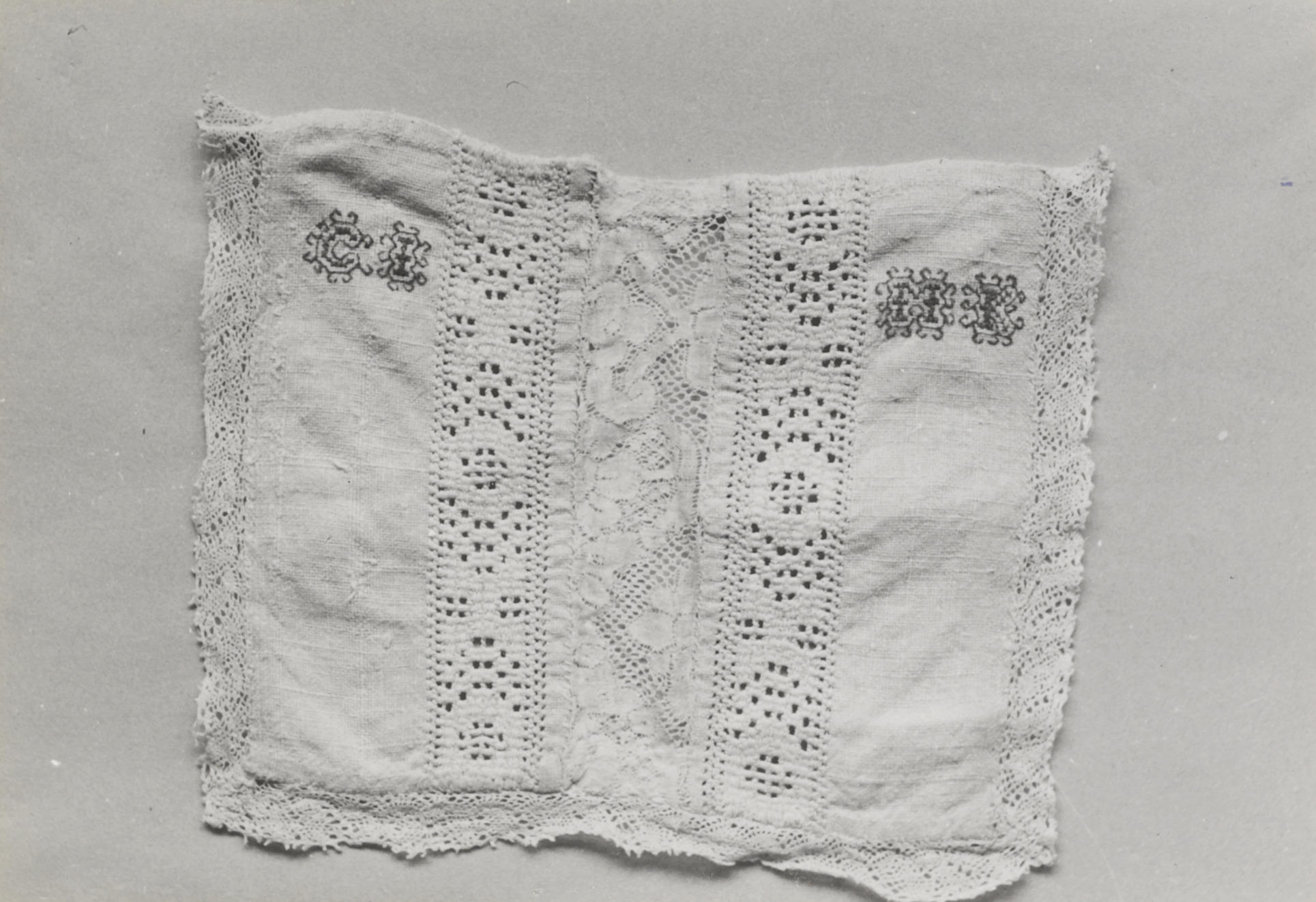 Detail van een merklap, Marken, 1943 (zwart-wit foto)