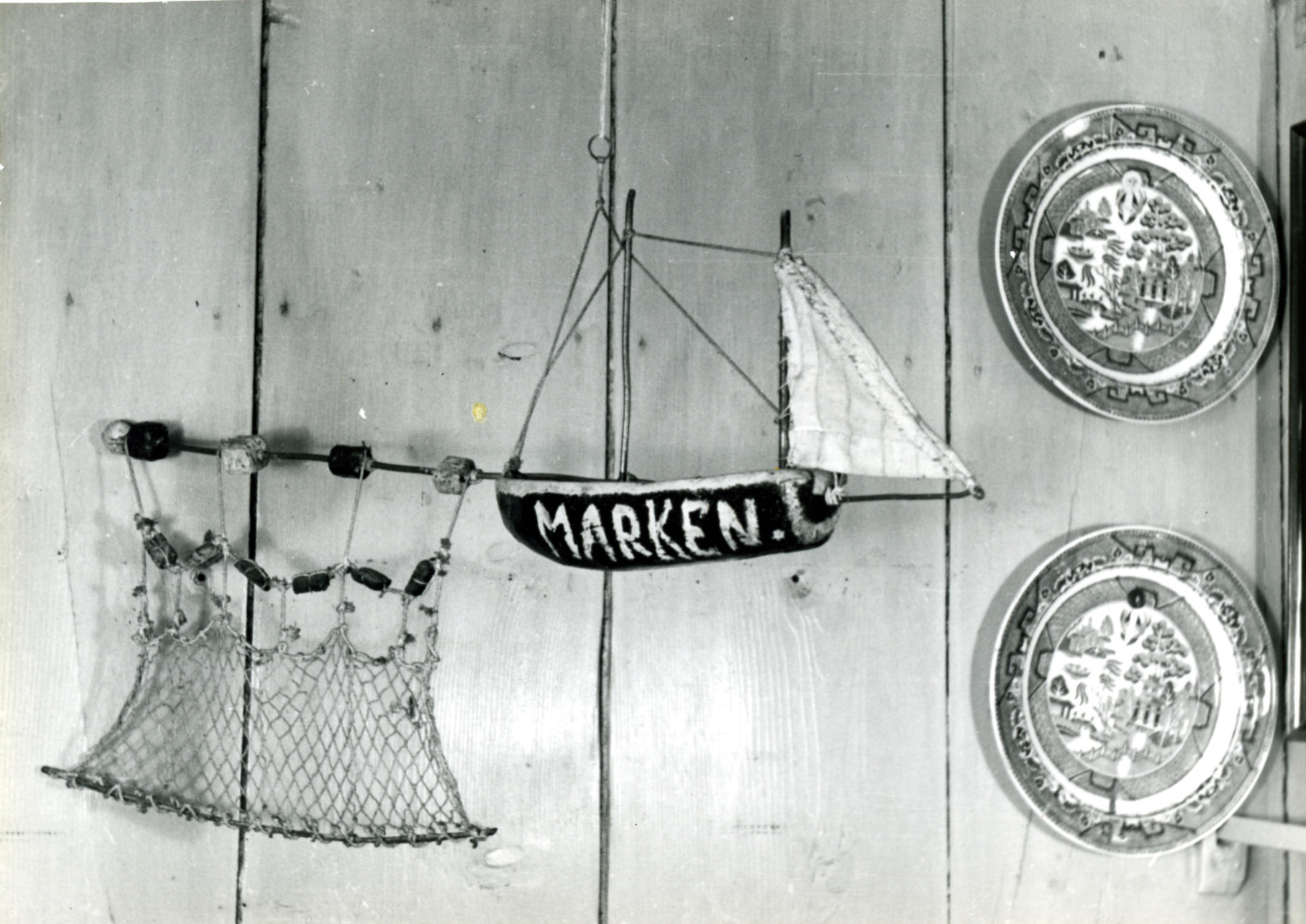 Scheepsmodel, Marken, 1943 (zwart-wit foto)
